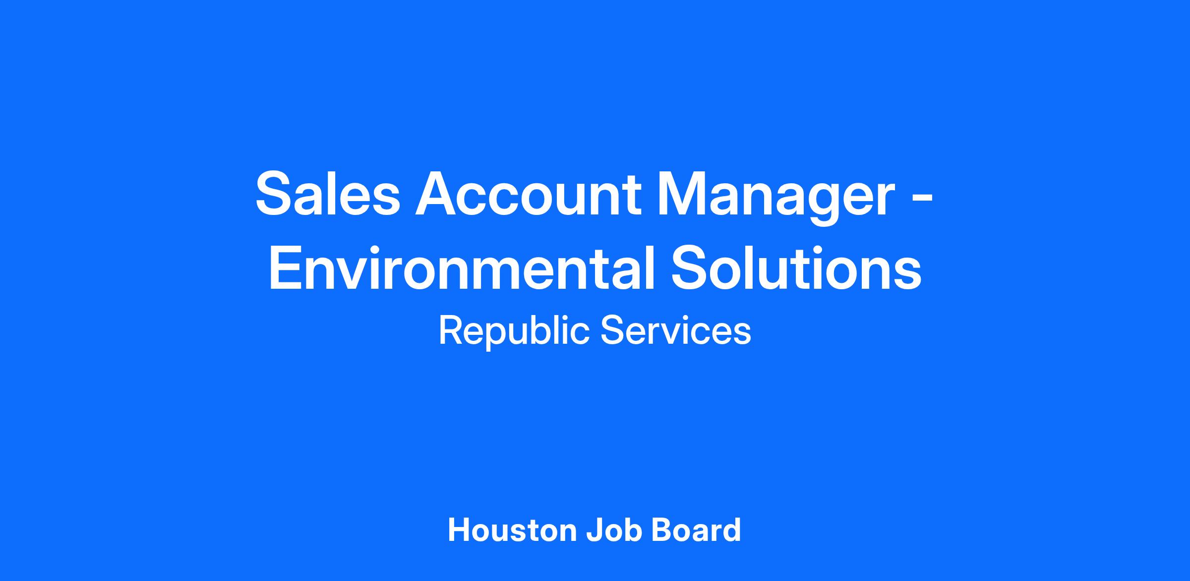 POSITION SUMMARY: The Account Manager ES is responsible for proactively maintaining and retaining relationships with existing customers for Environmental Solutions customers in an assigned territory and/or assigned book of business. Additionally, the Account Manager ES is required to increase the level of penetration in their existing customer base by selling the full suite of Republic Services products.