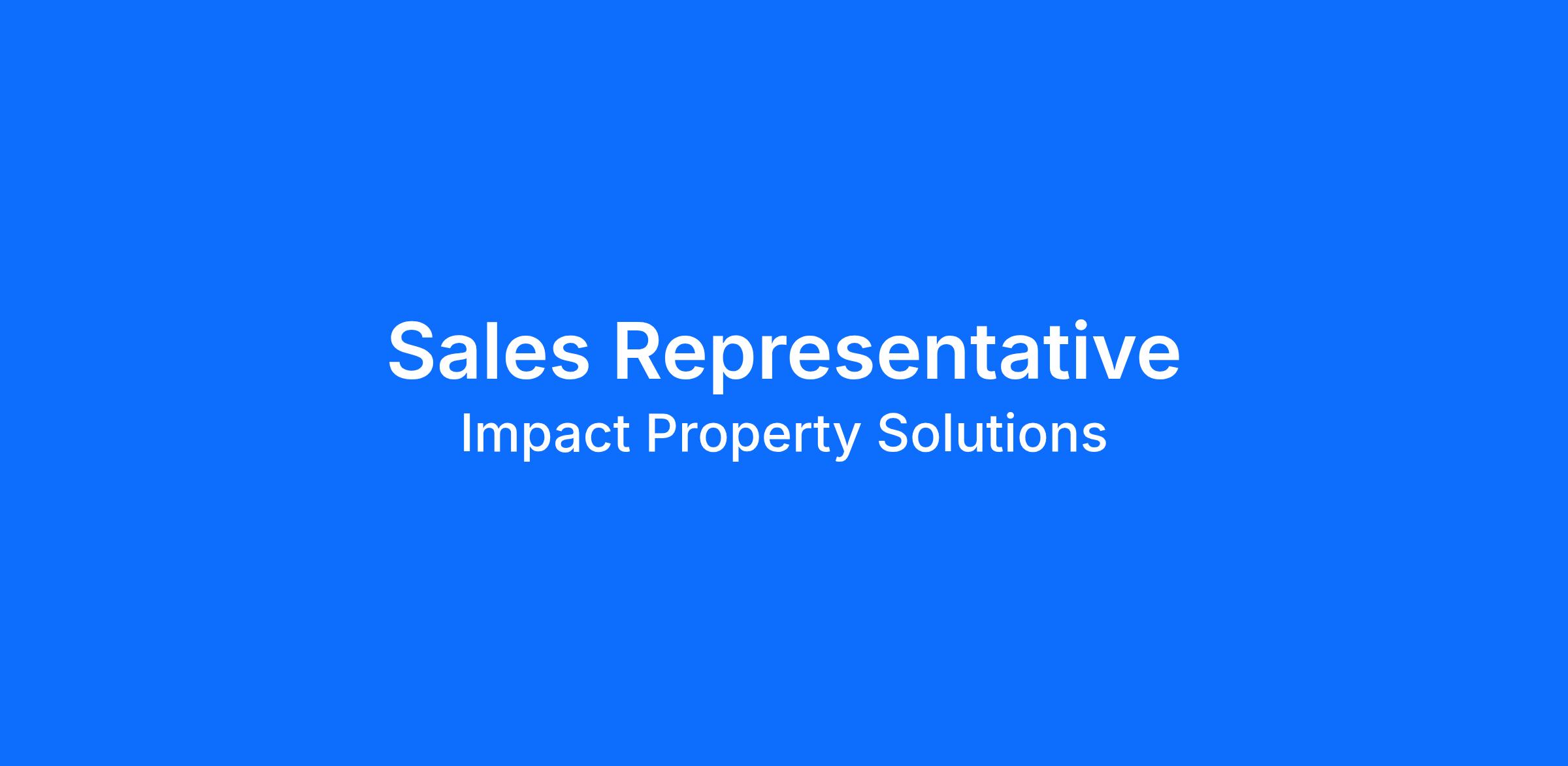Impact Property Solutions is currently seeking an experienced Sales Representative who will partner with, and ensure the long-term success, of our customers. The Sales Representative will be responsible for developing relationships with assigned portfolio customers and connect with key business executives and stakeholders. Sales Representatives must become fluent in all products the company represents and promote company strategic direction to increase sales and generate revenue and profit.
