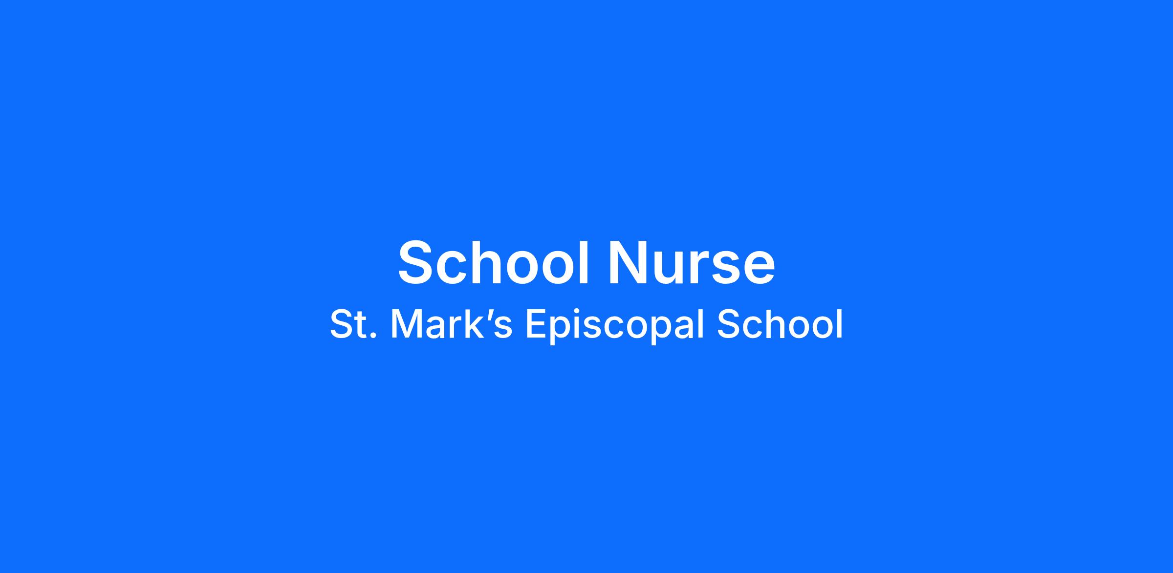 St. Mark’s seeks an organized registered nurse to serve as its School Nurse. The School Nurse promotes and protects the optimal health status of school-age children, including physical, mental, emotional, and social growth and development. The School Nurse is responsible for nursing care of students, managing and reporting student health records, promoting healthy practices, maintaining first aid supplies, organizing vaccine clinics, and sharing recommendations from state and federal authorities.