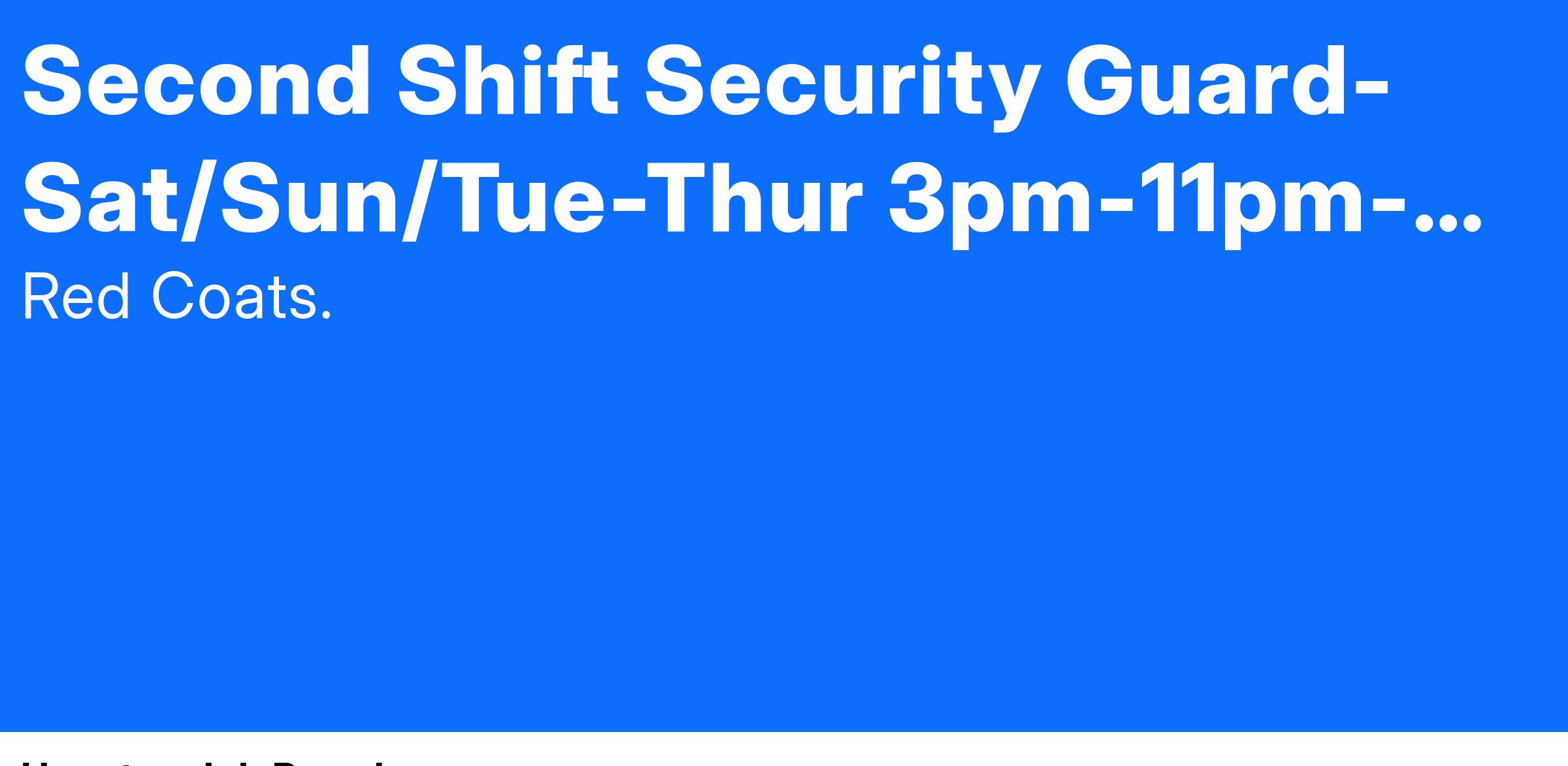 Second Shift Security Guard-Sat/Sun/Tue-Thur 3pm-11pm- 77036