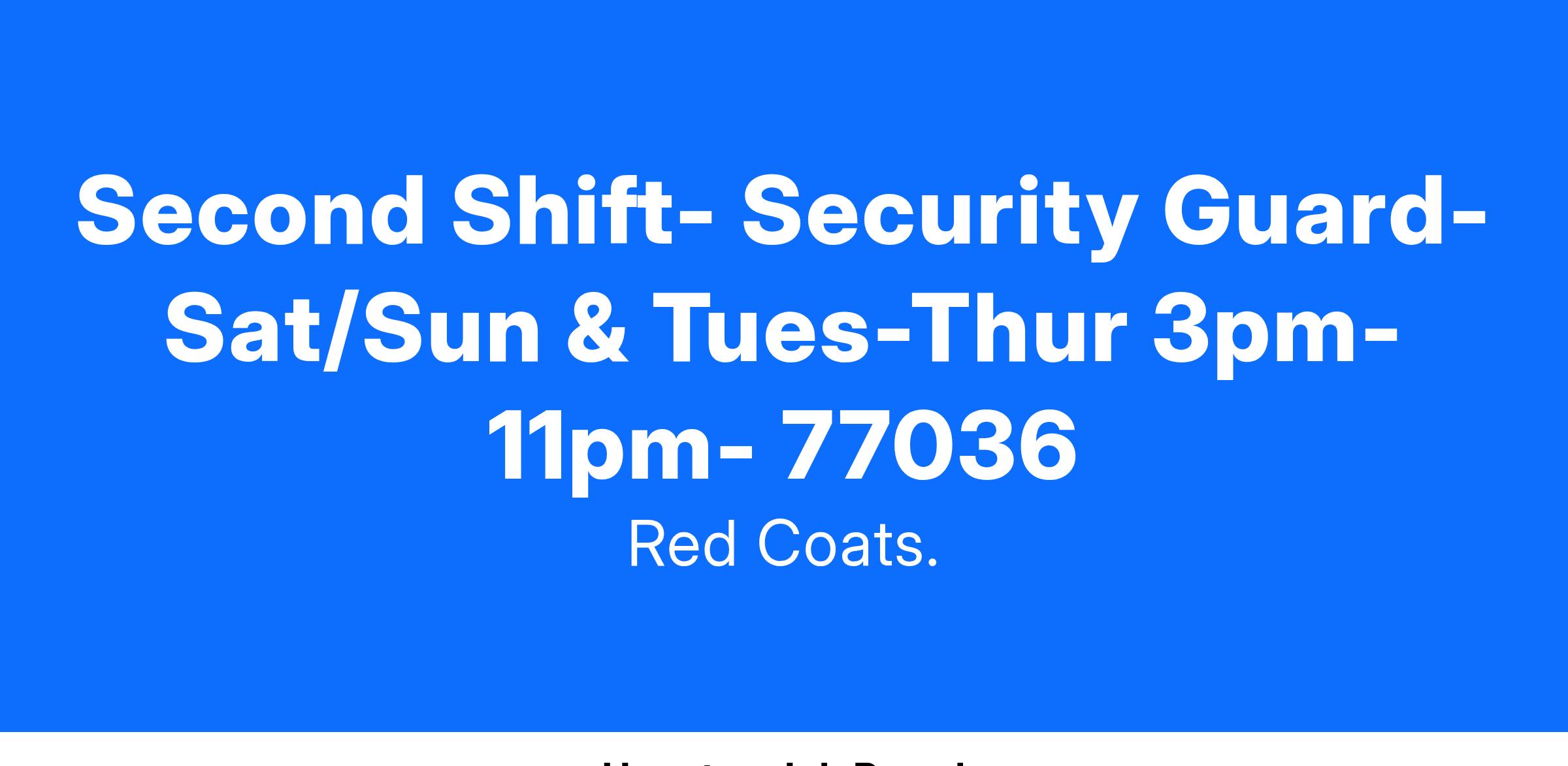 Second Shift- Security Guard- Sat/Sun & Tues-Thur 3pm-11pm- 77036