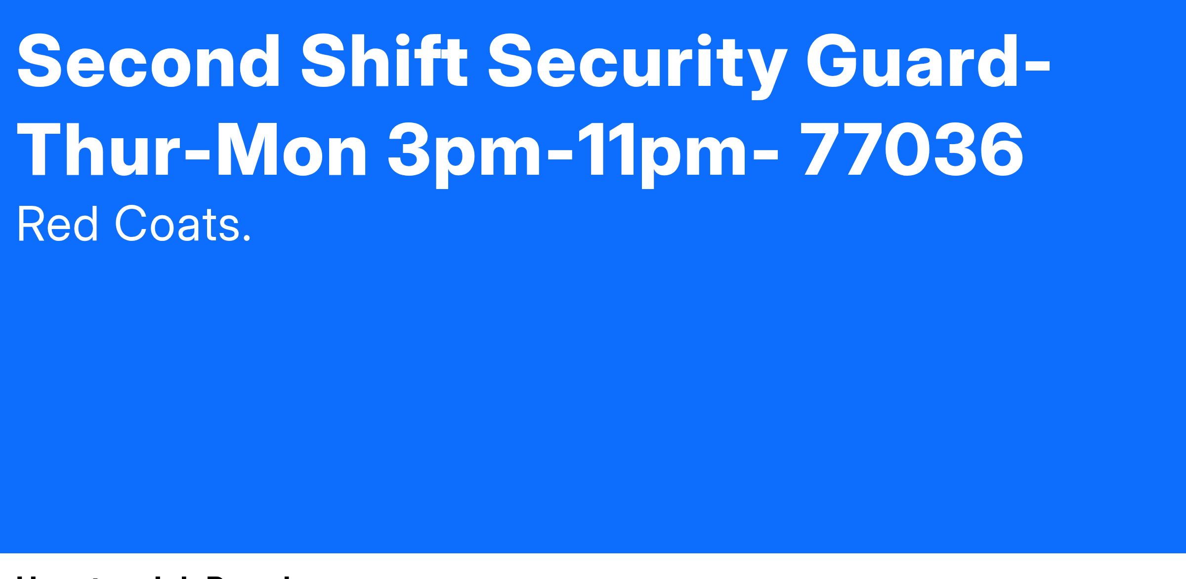 Second Shift Security Guard-Thur-Mon 3pm-11pm- 77036