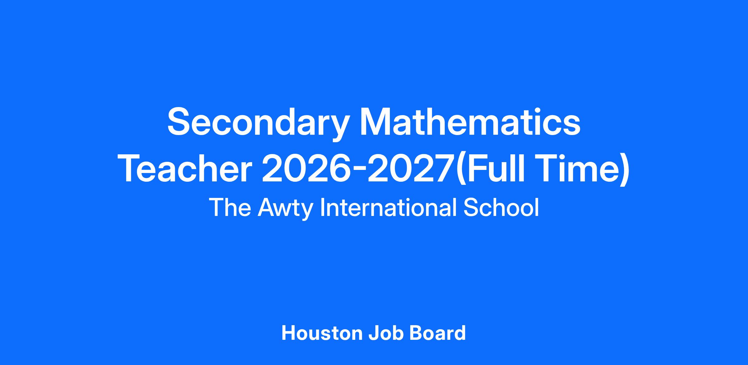 Secondary Mathematics Teacher 2026-2027 (Full Time)