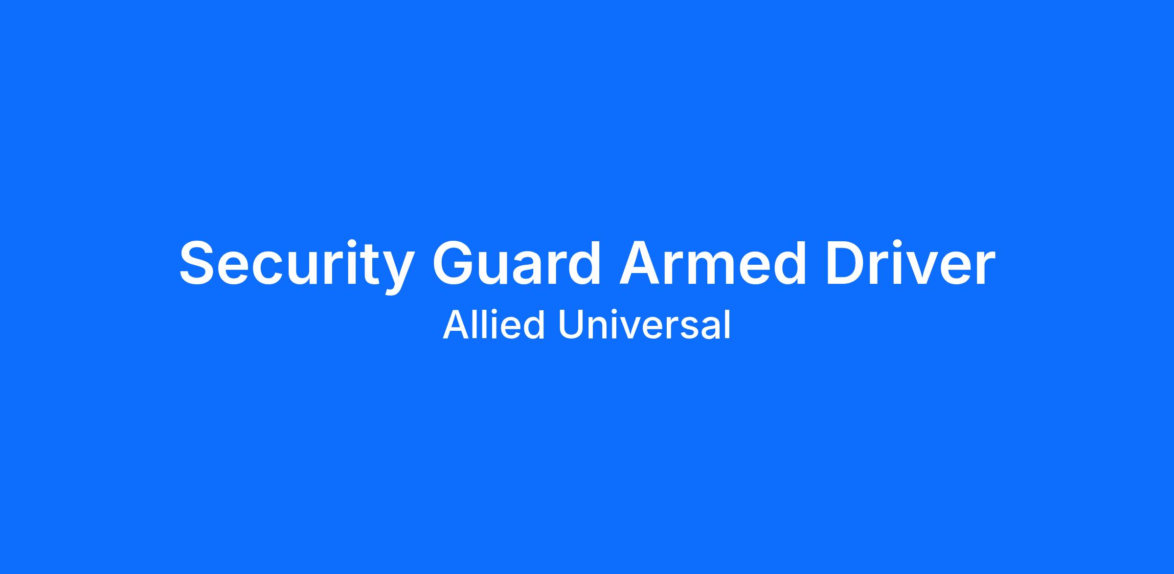 Allied Universal® is an Equal Opportunity Employer. All qualified applicants will receive consideration for employment without regard to race/ethnicity, age, color, religion, sex, sexual orientation, gender identity, national origin, genetic information, disability, protected veteran status or relationship/association with a protected veteran, or any other basis or characteristic protected by law. For more information: www.aus.com.