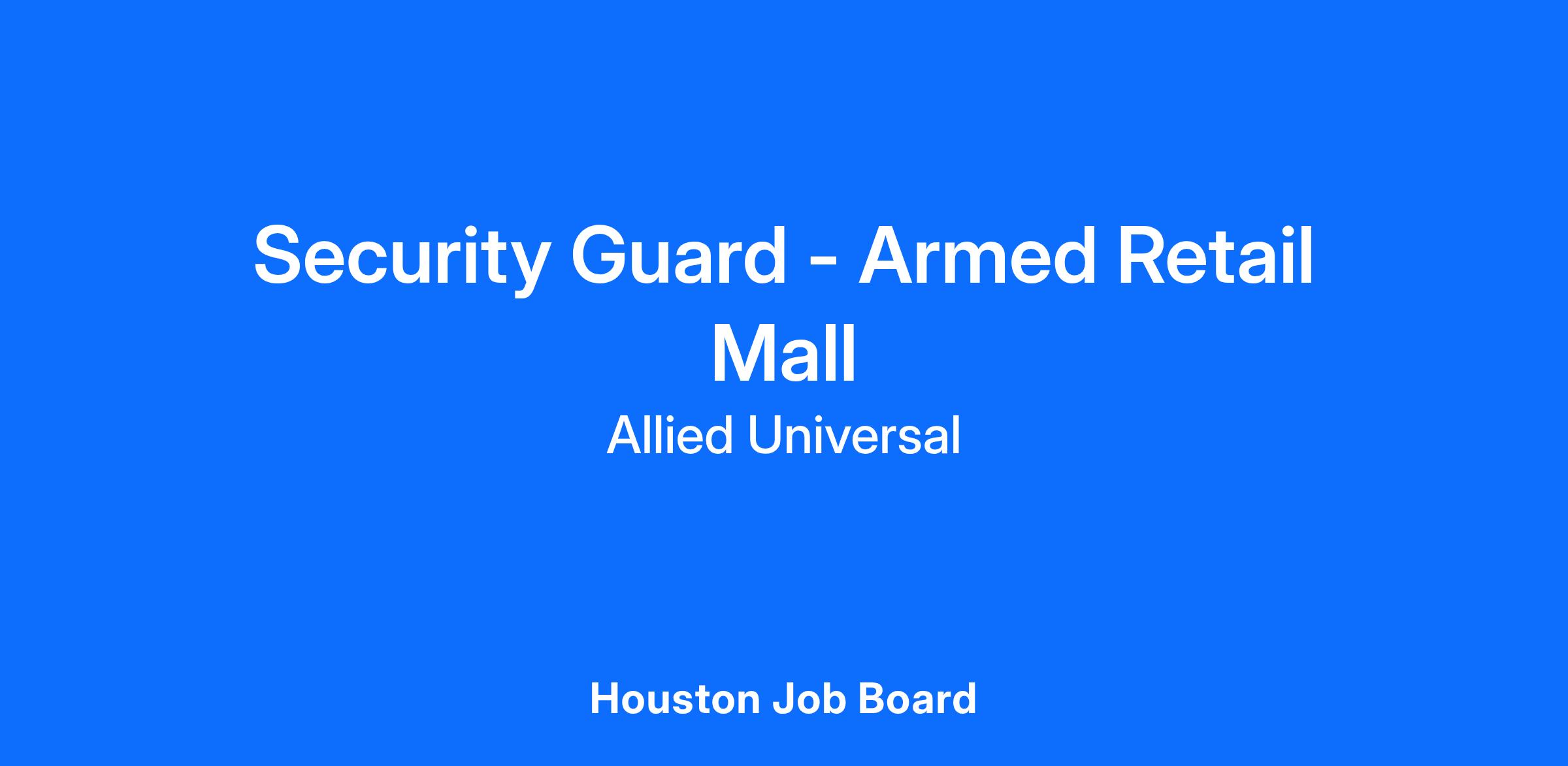 As a Security Guard - Armed Retail Mall in Houston, TX, you will serve and safeguard clients in a range of industries such as Retail/Malls, and more. As a Patrol Armed Security Professional with Allied Universal at a retail location, you will conduct routine patrols and remain highly visible to help deter security-related incidents. This armed and driving position requires you to respond quickly to situations, provide excellent customer service, and communicate clearly with visitors and staff. You will be part of a team that values integrity, reliability, and innovation, making a positive impact in a dynamic retail environment.