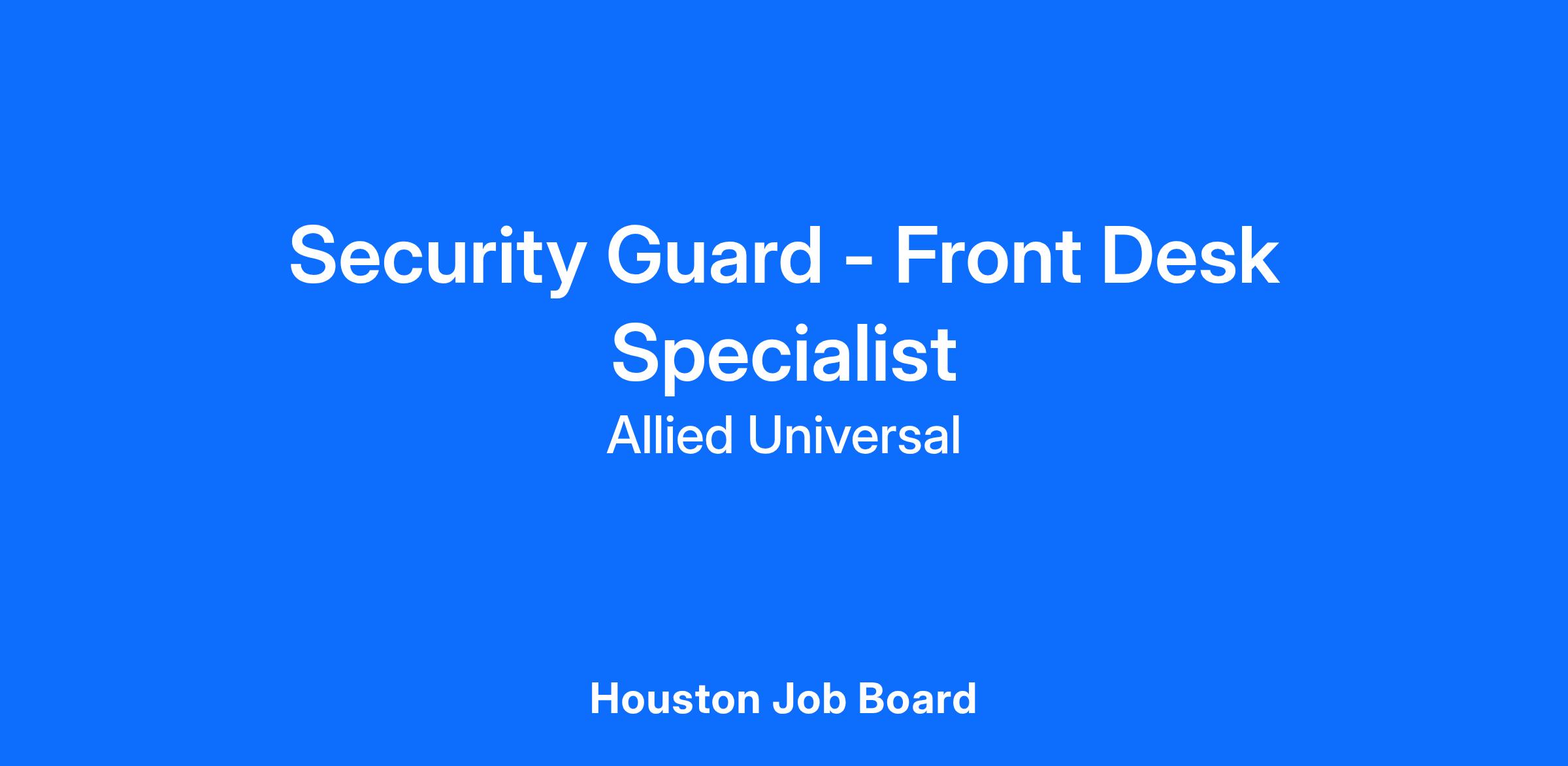 As a Security Professional - Front Desk Specialist in Houston, TX, you will serve and safeguard clients in a range of industries such as Commercial Real Estate, and more.