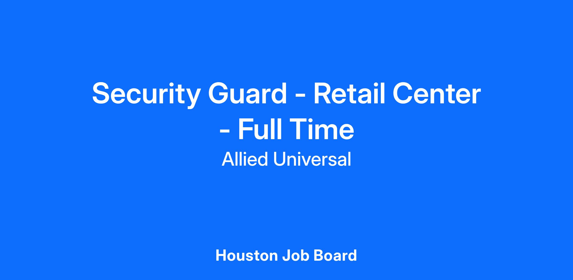 As a Security Guard - Retail Center - Full Time in Houston, TX, you will serve and safeguard clients in a range of industries such as Retail/Malls, and more.