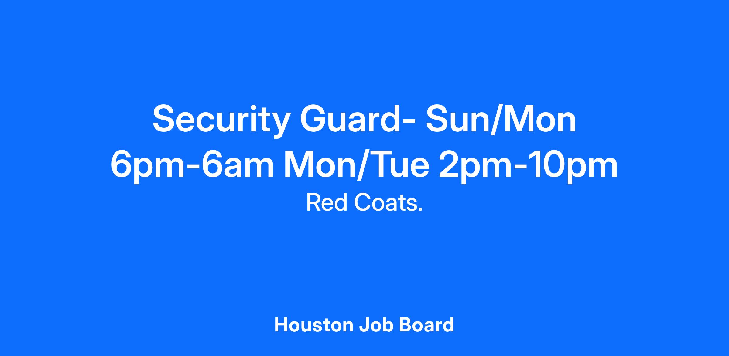 Security Guard- Sun/Mon 6pm-6am Mon/Tue 2pm-10pm