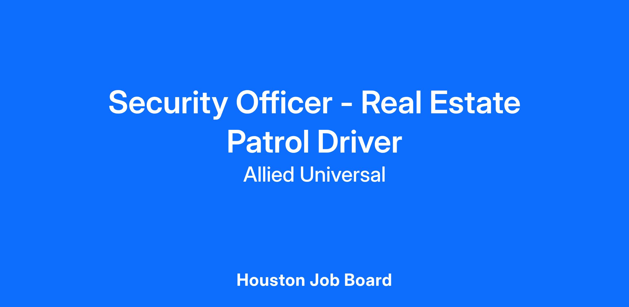 As a Security Officer - Real Estate Patrol Driver in Houston, TX, you will serve and safeguard clients in a range of industries such as Commercial Real Estate, and more. As a Patrol Unarmed Officer with Allied Universal in a commercial real estate location, you will monitor and patrol designated areas to help deter security-related incidents and create a welcoming atmosphere. You will conduct routine patrols, remain visible throughout the property, and deliver outstanding customer service. This is a driving post, so you will be responsible for operating a vehicle while upholding Allied Universal's values of agility, reliability, and teamwork.