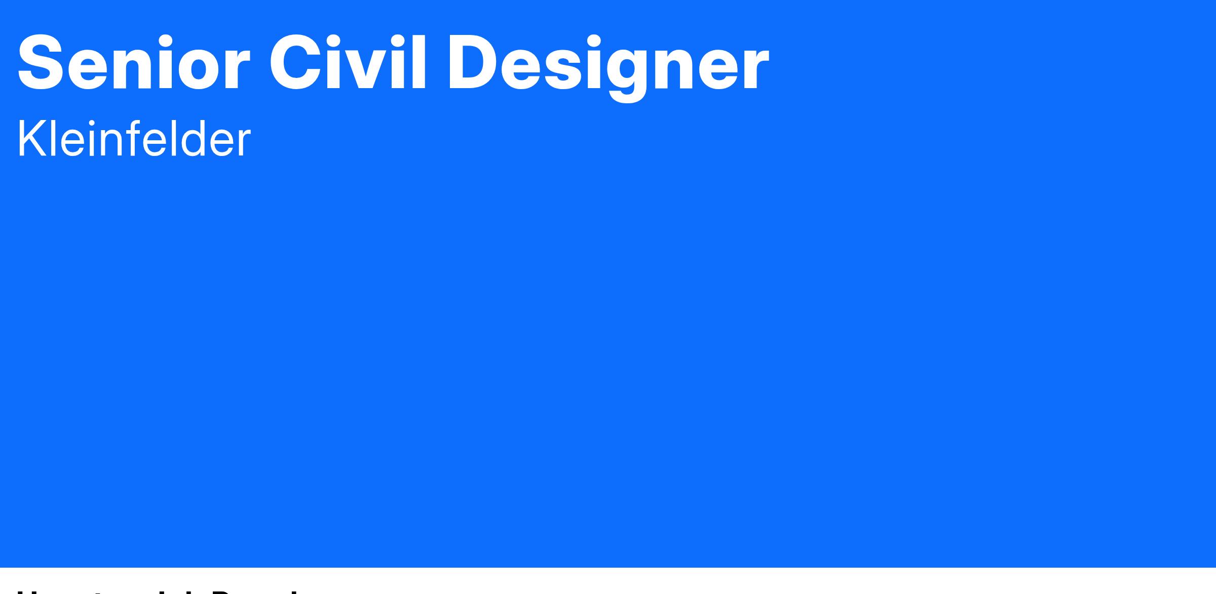 Doucet, a Kleinfelder Company is seeking to fill a Senior Civil Designer role in our company. The successful candidate will work with a civil engineer in the preparation and review of engineering drawings for site design, stormwater permitting, and construction documents. The key responsibilities of a Senior Civil Designer include, but are not limited to: