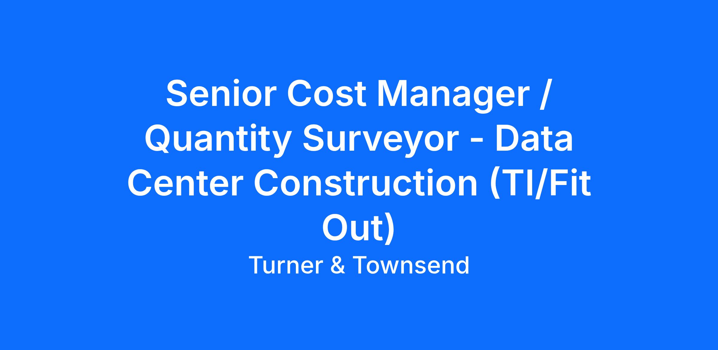 Turner & Townsend is seeking an experienced Senior Cost Manager / Quantity Surveyor (TI/Fit Out) to serve as the key, day‑to‑day client interface and deliver a value‑added cost management service on a large‑scale, mission‑critical data center program onsite in Houston, TX. This role is pivotal in ensuring the project is delivered on time, within budget, and to the highest standards, with strong emphasis on governance, commercial rigor, and stakeholder engagement.