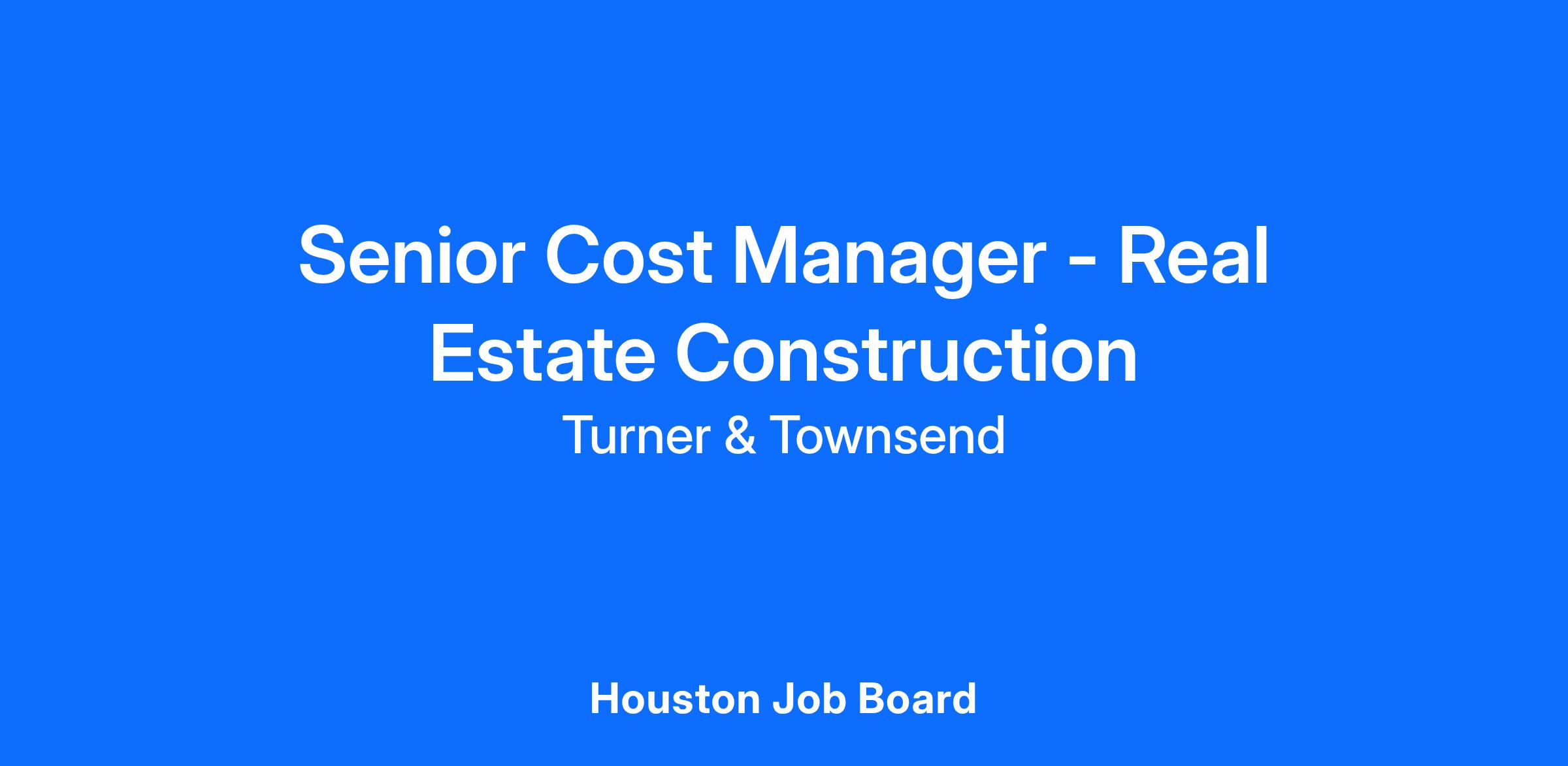 Turner & Townsend are looking for an experienced Senior Cost Manager and/or Quantity Surveyor to act as the key, day to day client interface, ensuring that client objectives are met through the delivery of a value-added cost management service.