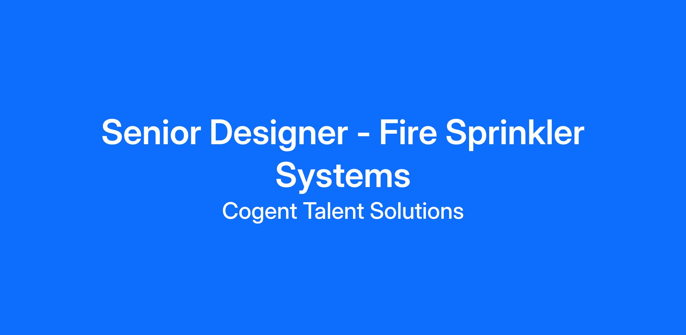Our client is a leader in the fire protection industry. We are looking for a Senior Fire Sprinkler Designer, responsible for producing code-compliant, constructible fire sprinkler system designs from concept through permit approval and construction support.