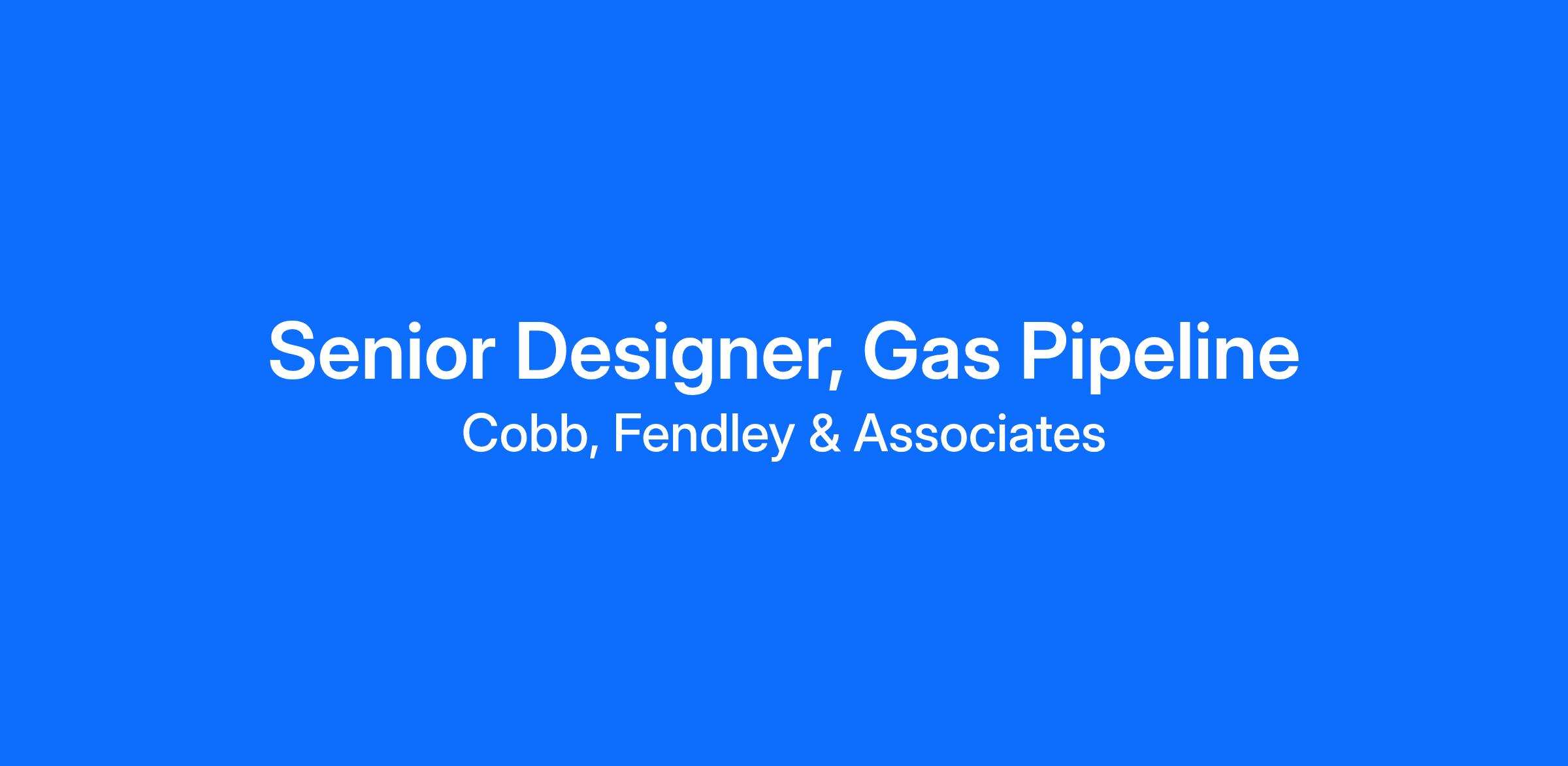 CobbFendley is seeking an experienced Gas Pipeline Senior Designer in our Houston office.