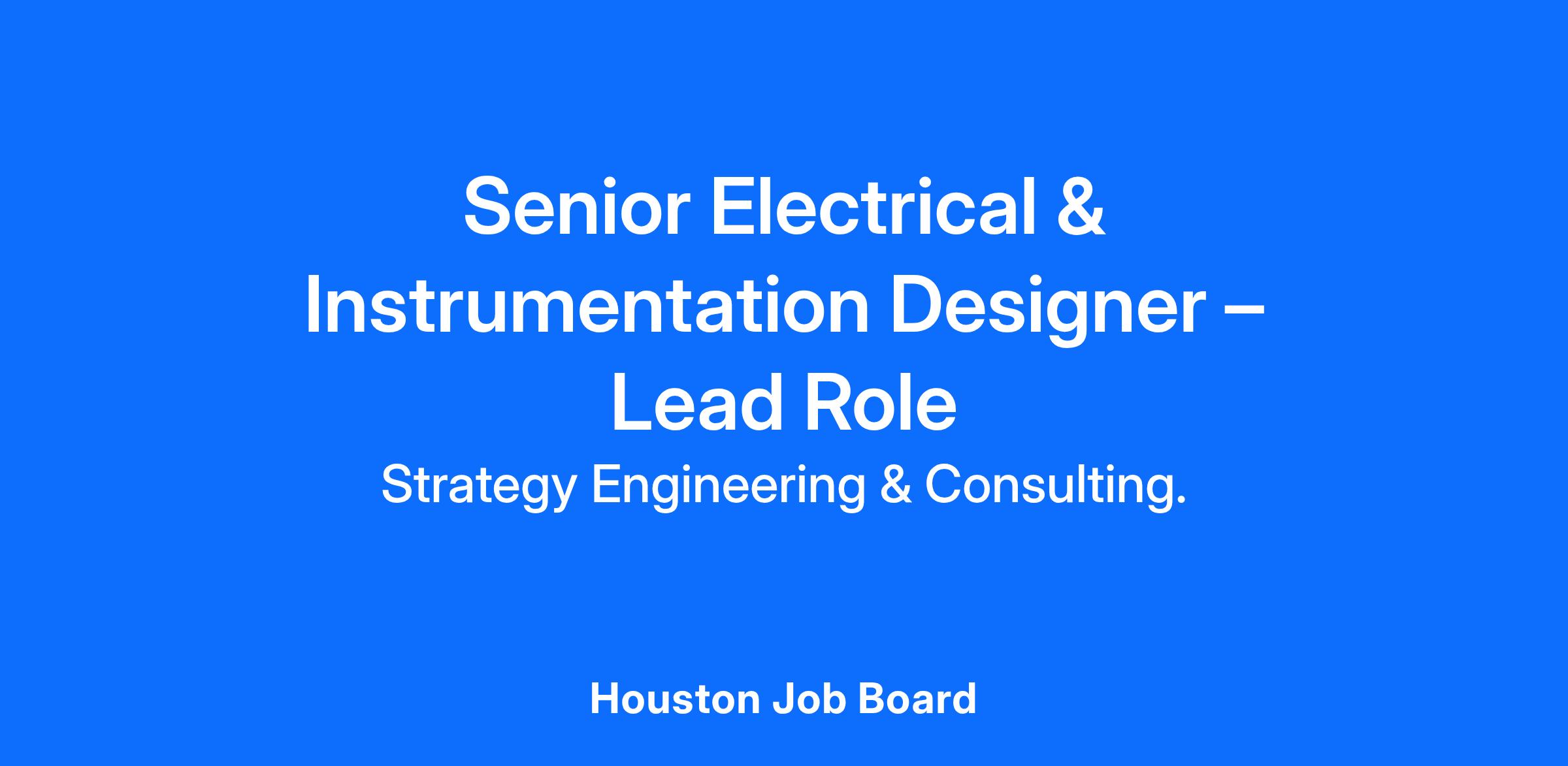 Strategy Engineering is seeking a Senior Electrical & Instrumentation Designer β Lead who will take a hands-on role in detailed I&E design activities across a variety of offshore and onshore oil and gas projects. This position is not only responsible for producing technical deliverables but also for leading the Electrical & Instrumentation Design team, managing workload distribution, and contributing to the strategic success of the department.