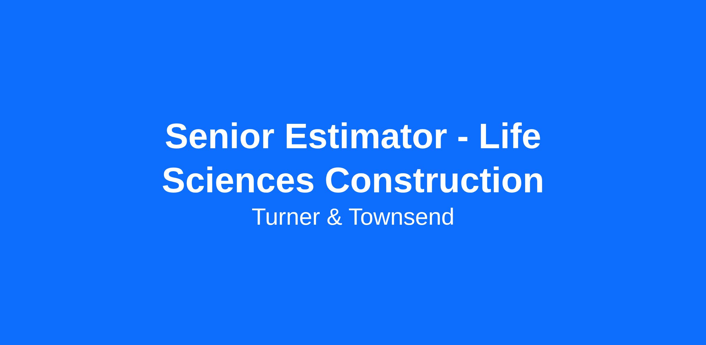 Turner & Townsend is seeking an experienced Senior Construction Estimator to join our team to support large scale construction projects and programs. The ideal candidate will be a great communicator with a strong track record of providing accurate estimating services.