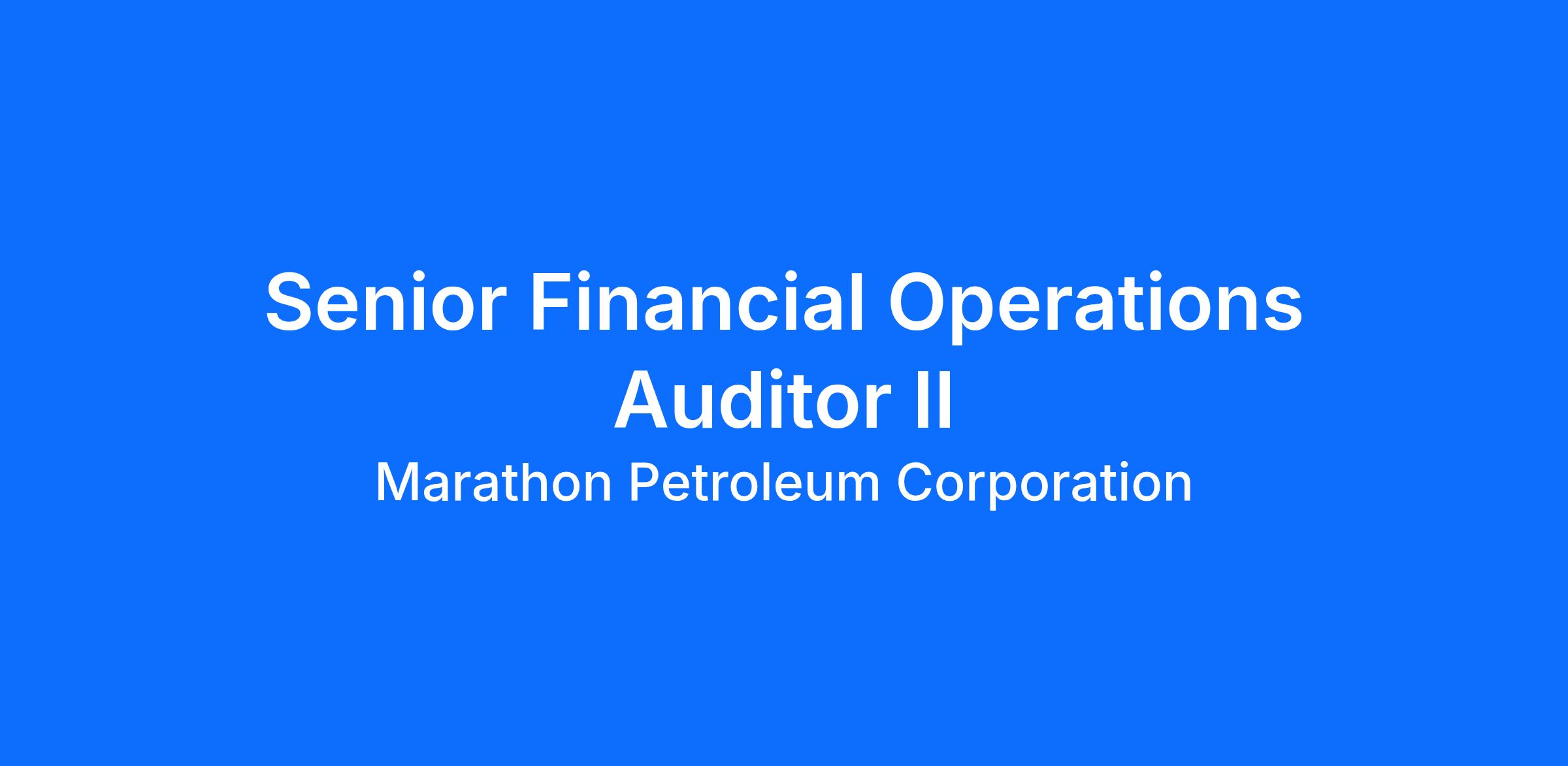 The Senior Financial Operations Auditor plays a critical role in executing and overseeing financial, operational, compliance, and special audits across Marathon Petroleum Corporation (MPC) and MPLX business units. Reporting directly to the Financial Operations Audit Director, this position ensures audit engagements are conducted in alignment with the International Standards for the Professional Practice of Internal Auditing and the enterprise’s audit methodology.