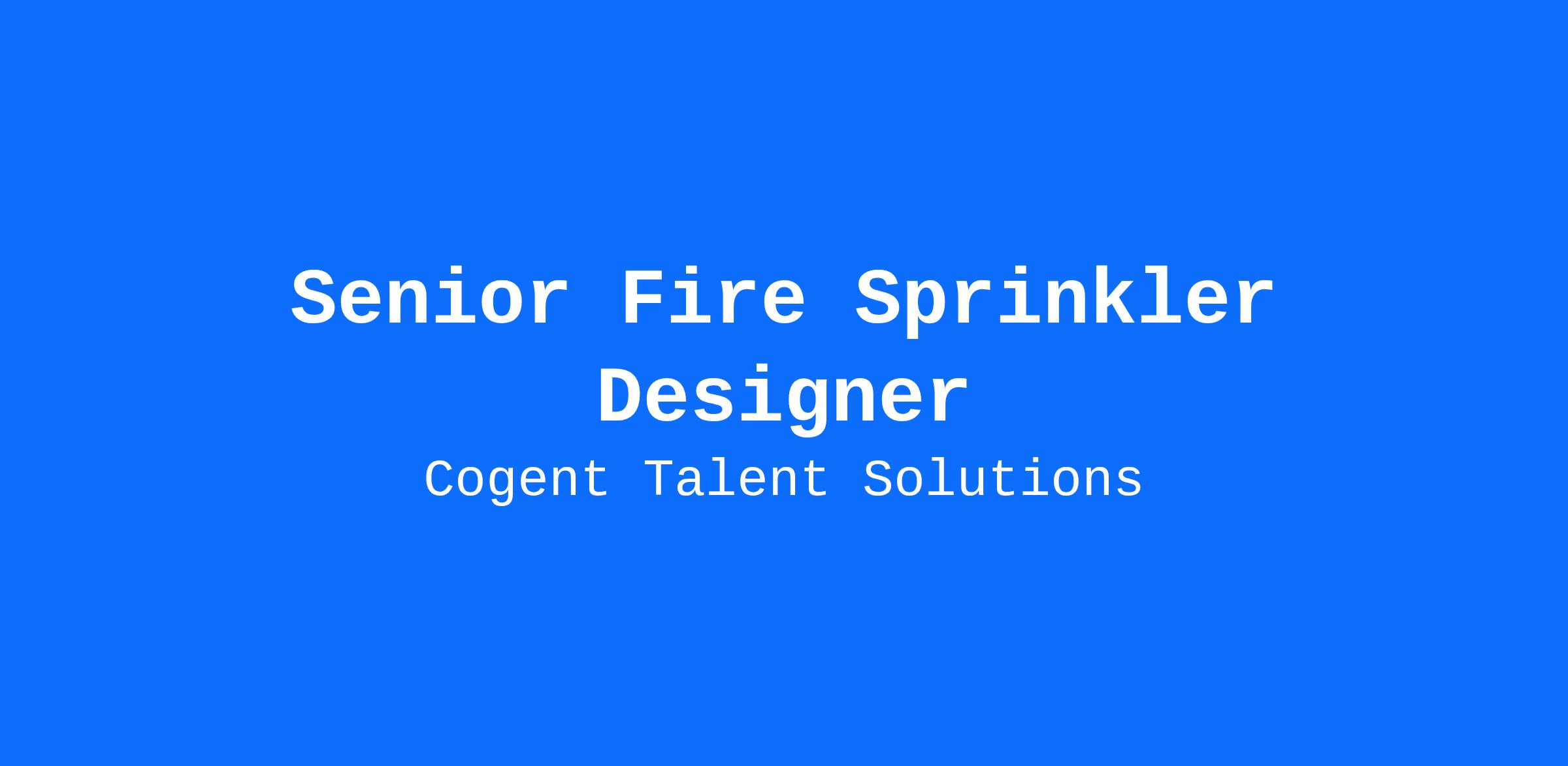 Our client is a leader in the fire protection industry. We are looking for a Senior Fire Sprinkler Designer, responsible for producing code-compliant, constructible fire sprinkler system designs from concept through permit approval and construction support.