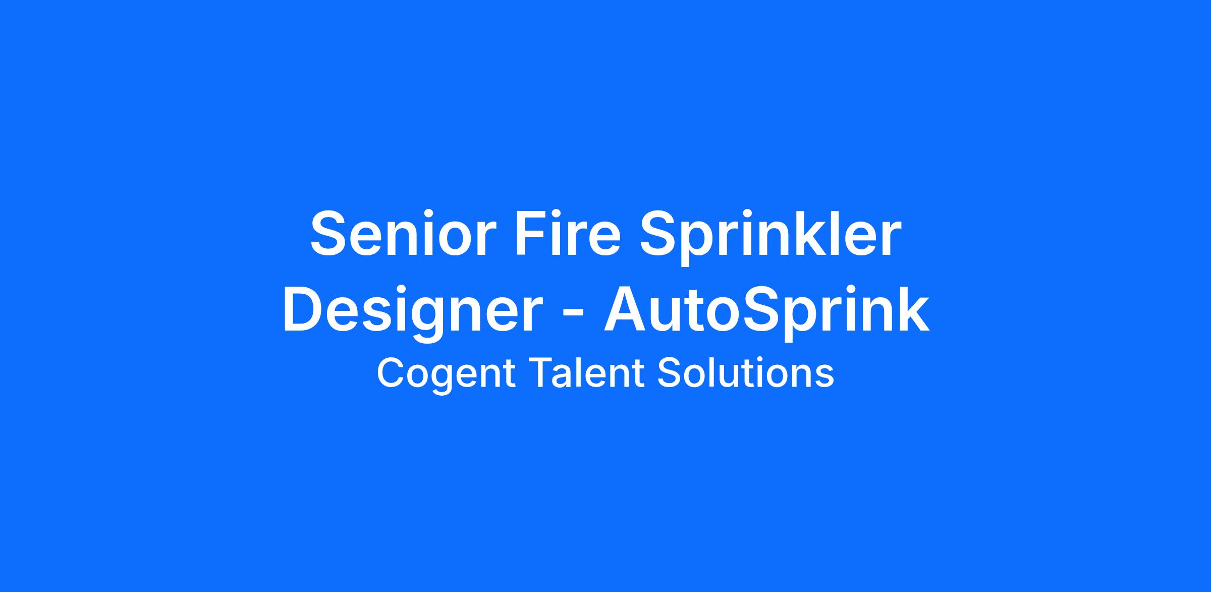Our client is a leader in the fire protection industry. We are looking for a Senior Fire Sprinkler Designer, responsible for producing code-compliant, constructible fire sprinkler system designs from concept through permit approval and construction support.