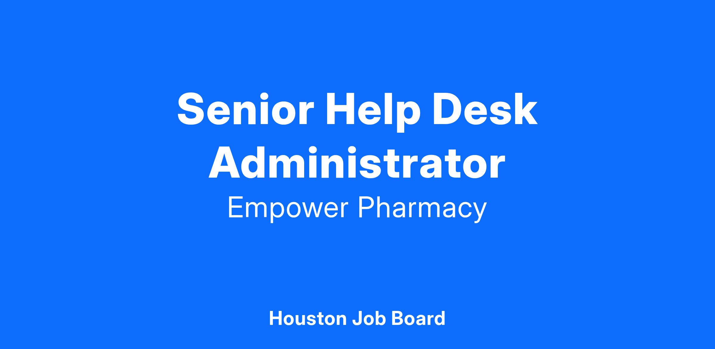 The Senior Help Desk Administrator plays a critical role in ensuring smooth IT operations by diagnosing and troubleshooting software and hardware issues, managing user accounts, and maintaining network connectivity. This position provides enterprise-level support, offering exceptional customer service and resolving technical issues efficiently. Through proactive system management and direct communication, the Senior Help Desk Administrator supports Empower’s mission of providing innovative, affordable medications by ensuring seamless business technology operations.