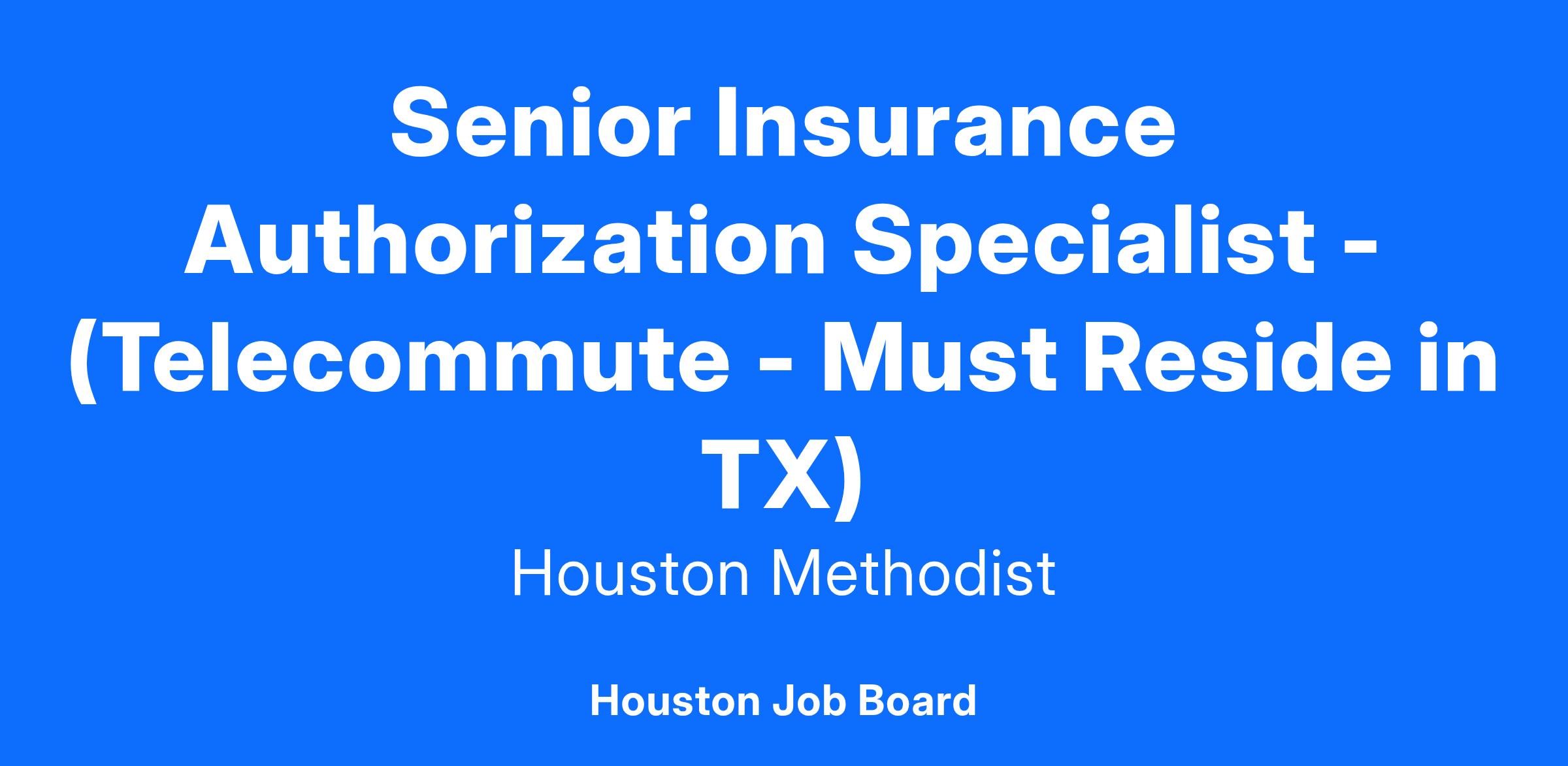 Senior Insurance Authorization Specialist - (Telecommute - Must Reside in TX)