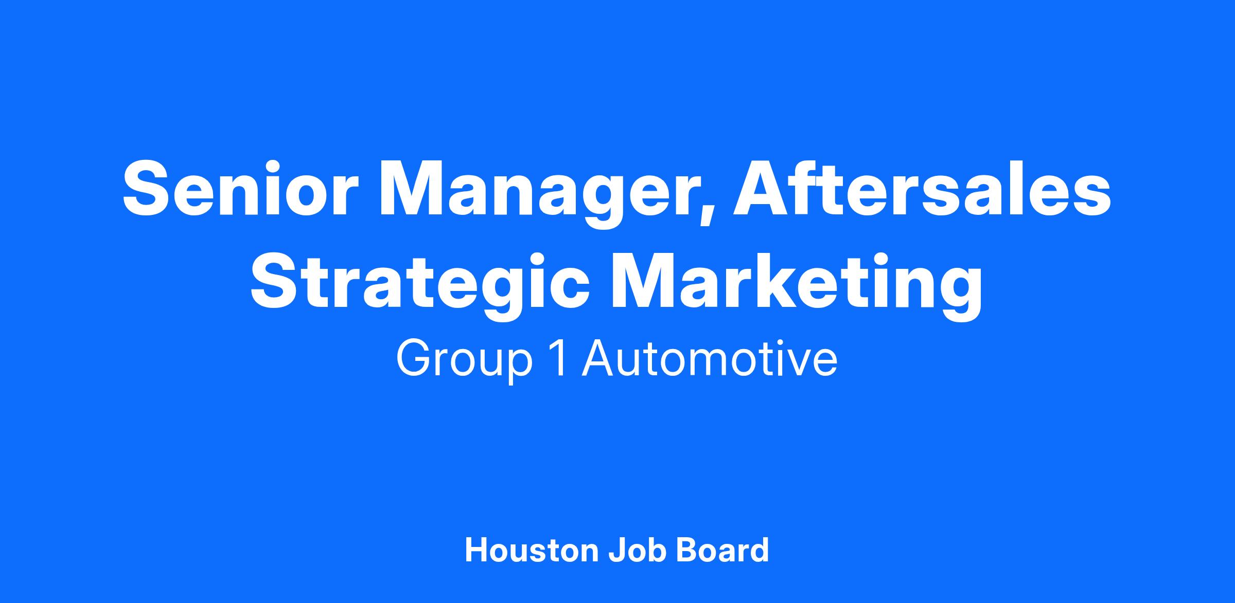 Group 1 Automotive, Inc., an international Fortune 300 automotive retailer, is a leading operator in the automotive retailing industry. As part of our continued growth, we are seeking a dynamic and skilled individual to join our marketing department as a Senior Manager, Aftersales Strategic Marketing. This role is based at our corporate headquarters in Houston, TX, and requires working on-site.