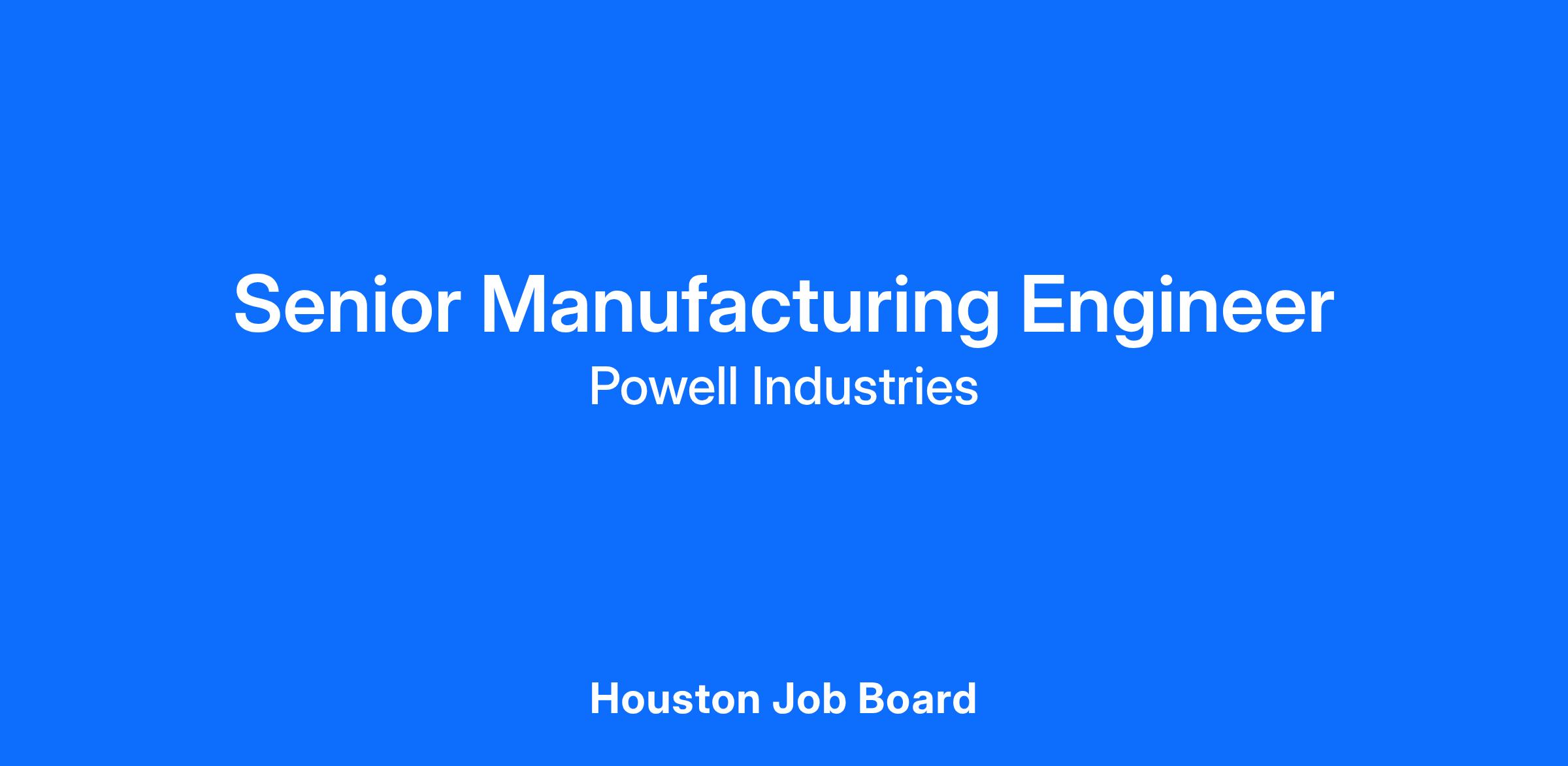 Powell is hiring a Senior Manufacturing Engineer in Southeast Houston! Our Manufacturing Engineers are the process owners that design and improve processes and procedures used for the manufacturing of Powell engineered to order products. This position is required to identify and implement processes that improve the safety, quality, and operating efficiency in a manner that supports the objectives of the Business Unit. Posted position does not allow for sponsorship or relocation assistance.