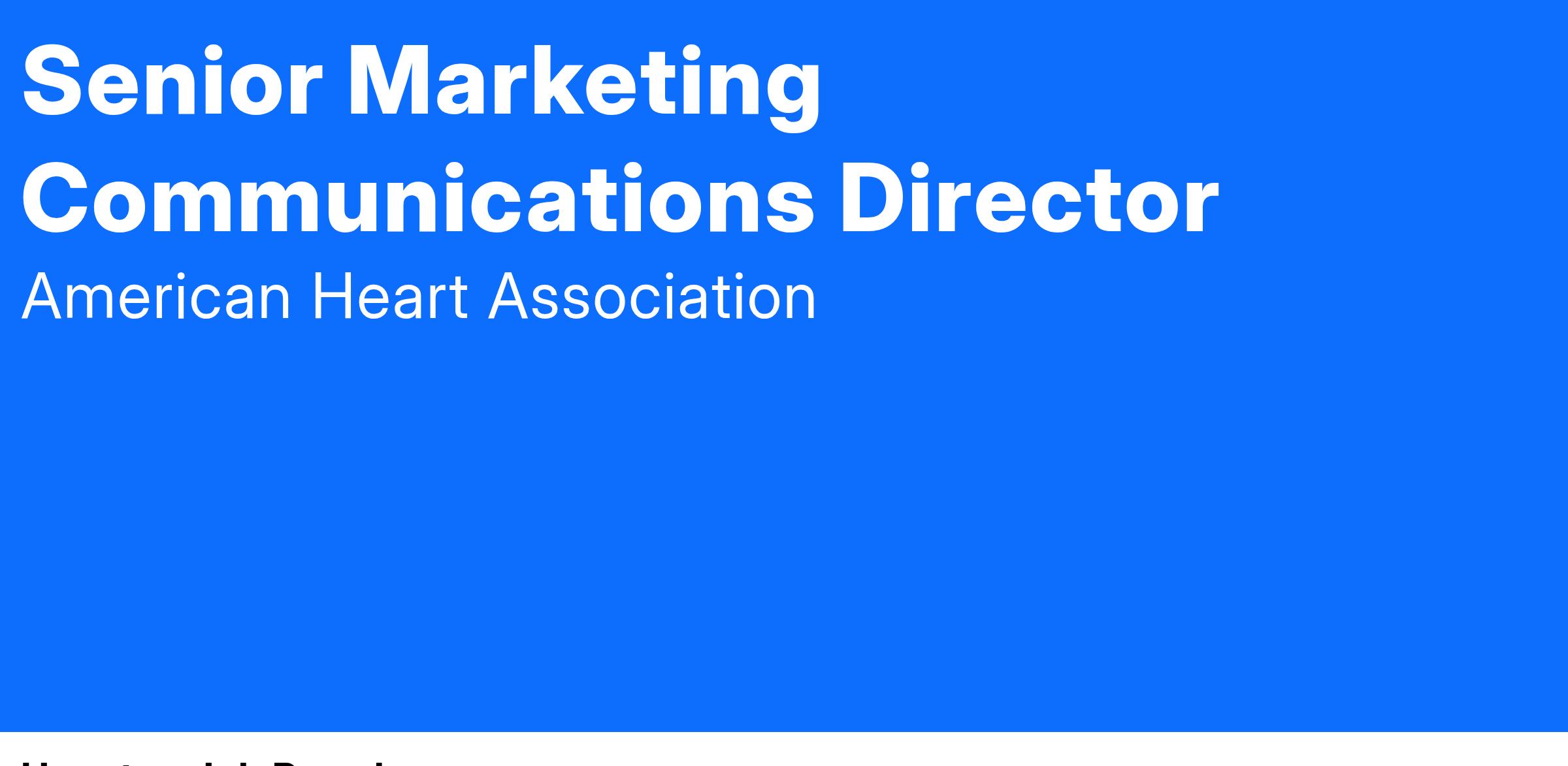 The Sr. Director will develop and maintain strong media relationships and partnerships. Quickly and professionally handle sensitive information and issues. Participate in the planning and development of cause-marketing plans. Lead the Association's response to internal and external crises and sensitive issues. Work collaboratively with the leadership team of Greater Houston to determine how communications and marketing can support and impact the strategic goals of the American Heart Association. Coordinates advertising and public service campaigns. Works with regional volunteers, partners and staff leadership, regional staff, news media, outside organizations and the public to enhance the American Heart Association’s image and disseminate key messages.
