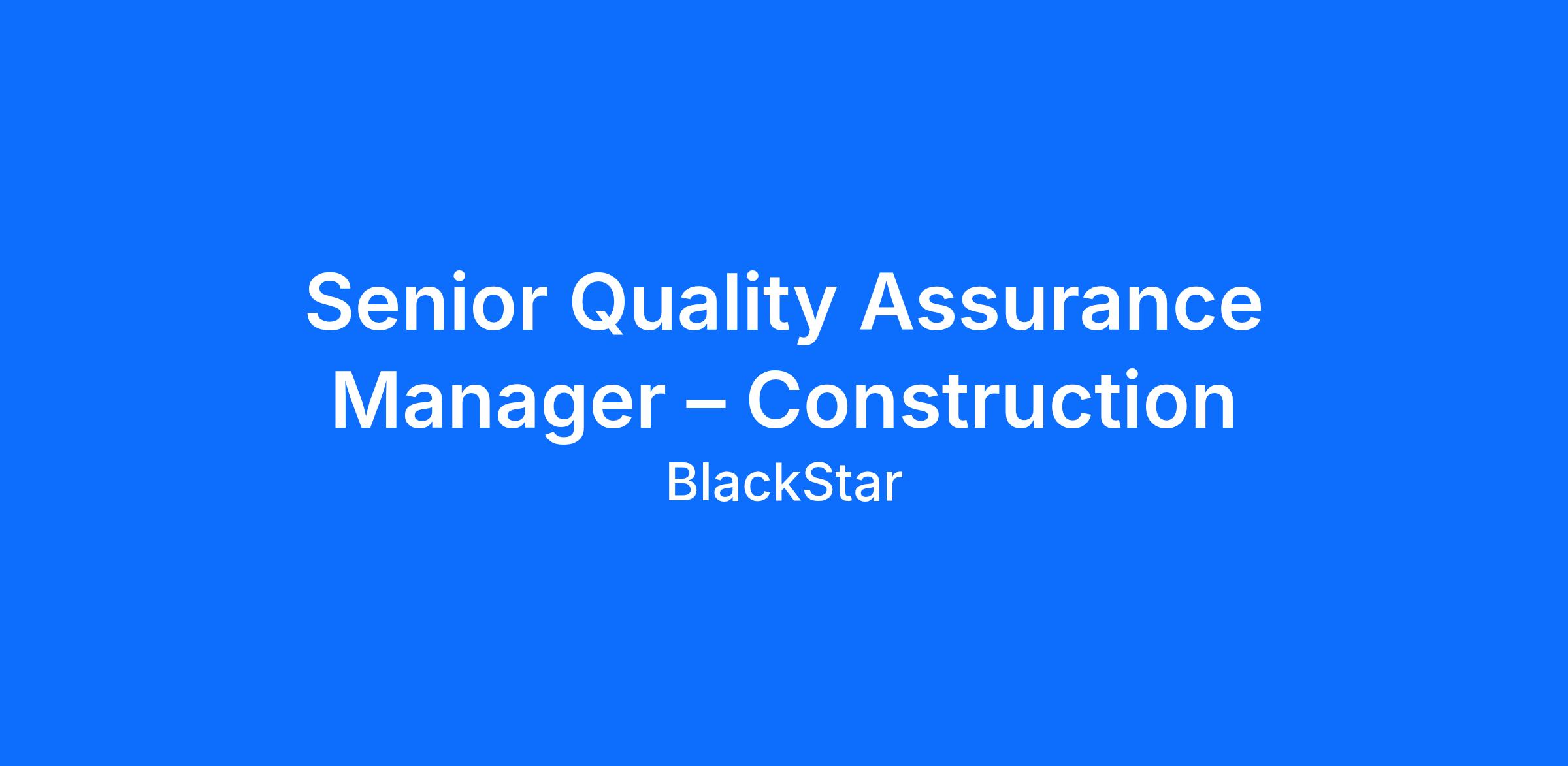 Senior Quality Assurance Manager – Construction | Houston, TX