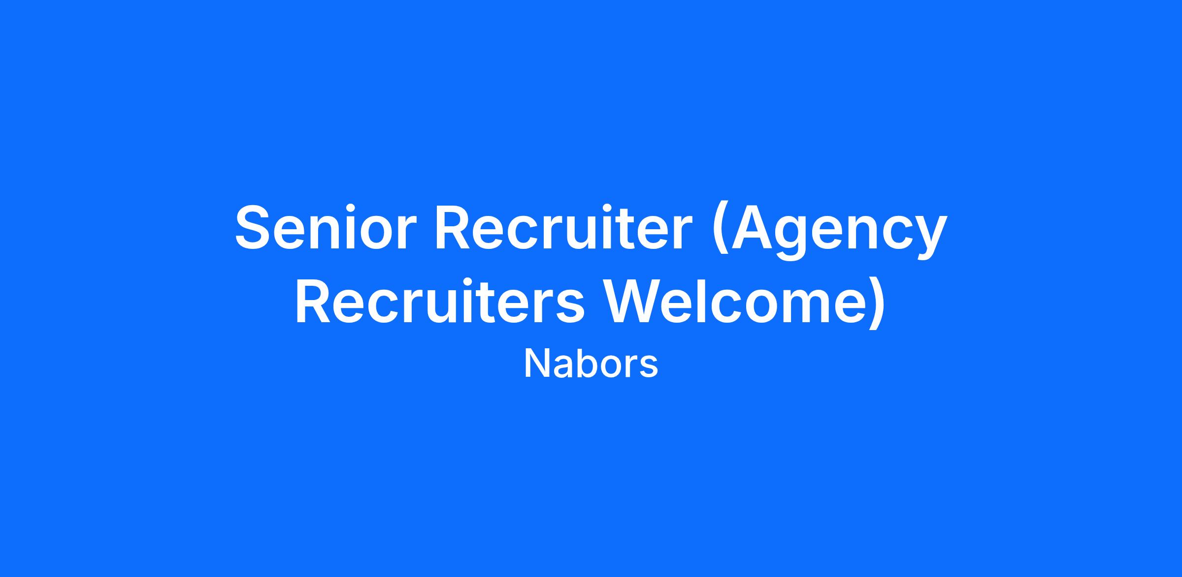 DescriptionResponsible for full life cycle recruiting for Corporate, Engineering/Technical and IT roles. The Senior Recruiter will work as part of the Talent Acquisition team in an environment that is fast-paced, proactive, and requires the ability to manage competing priorities across multiple business functions. This individual will be responsible for utilizing effective storyboarding techniques that demonstrate a strong understanding of the business, technology, and people to position Nabors as an βemployer of choice,β while acting as a trusted advisor to hiring managers and business leaders.