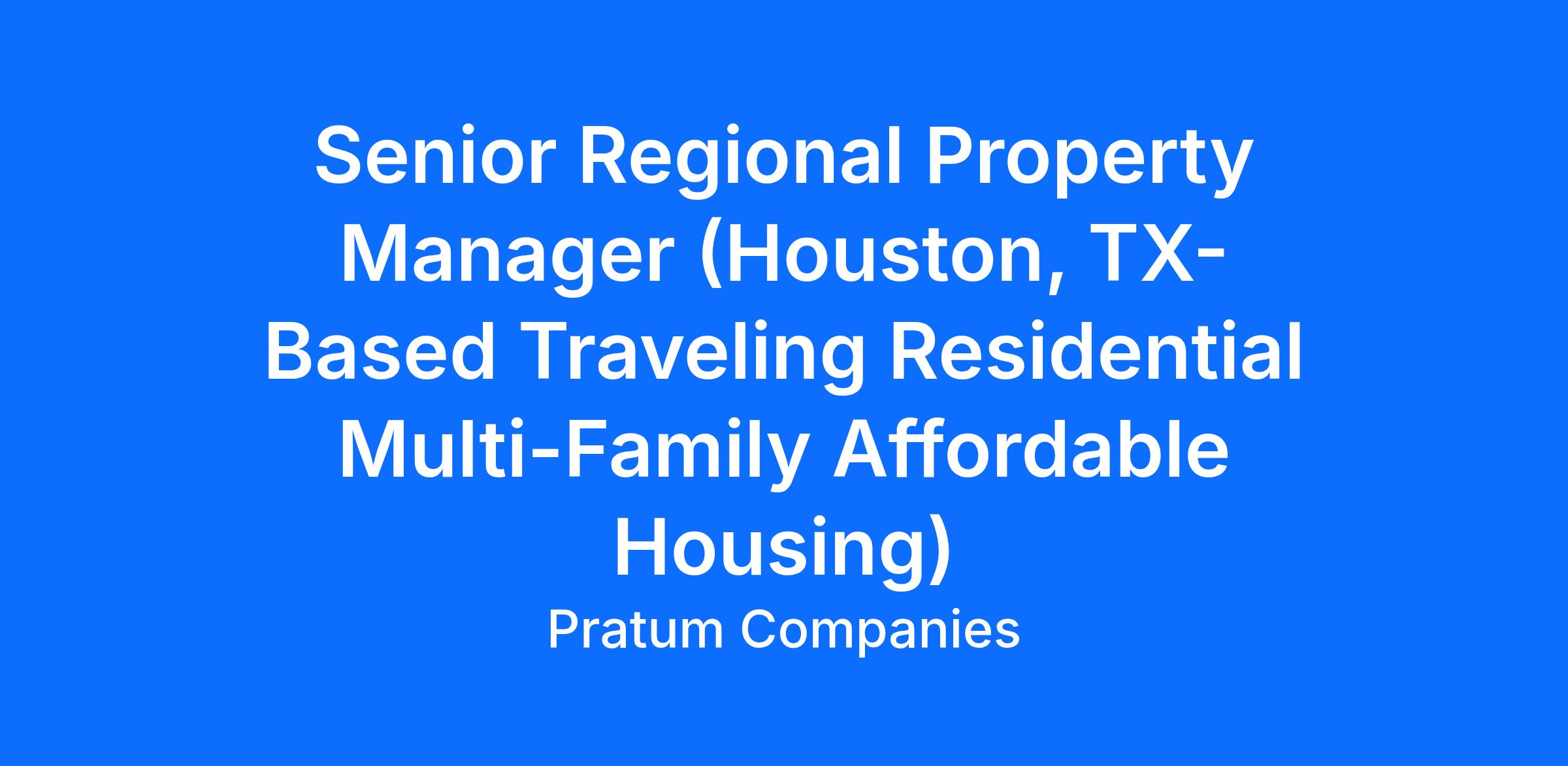 Senior Regional Property Manager (Traveling) - Residential Multi-Family Affordable Housing - Texas/Southern US Region