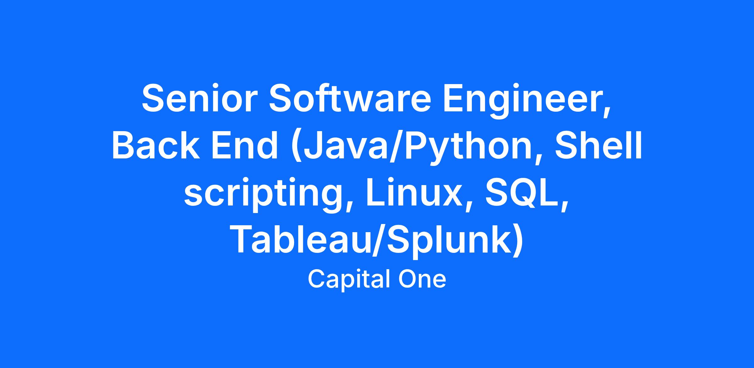 Senior Software Engineer, Back End (Java/Python, Shell scripting, Linux, SQL, Tableau/Splunk)