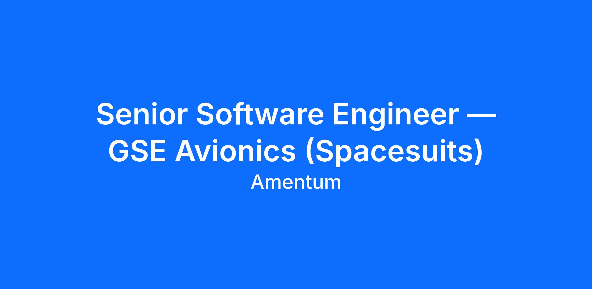 We have an exciting opportunity for a Senior Software Engineer — GSE Avionics (Spacesuits).