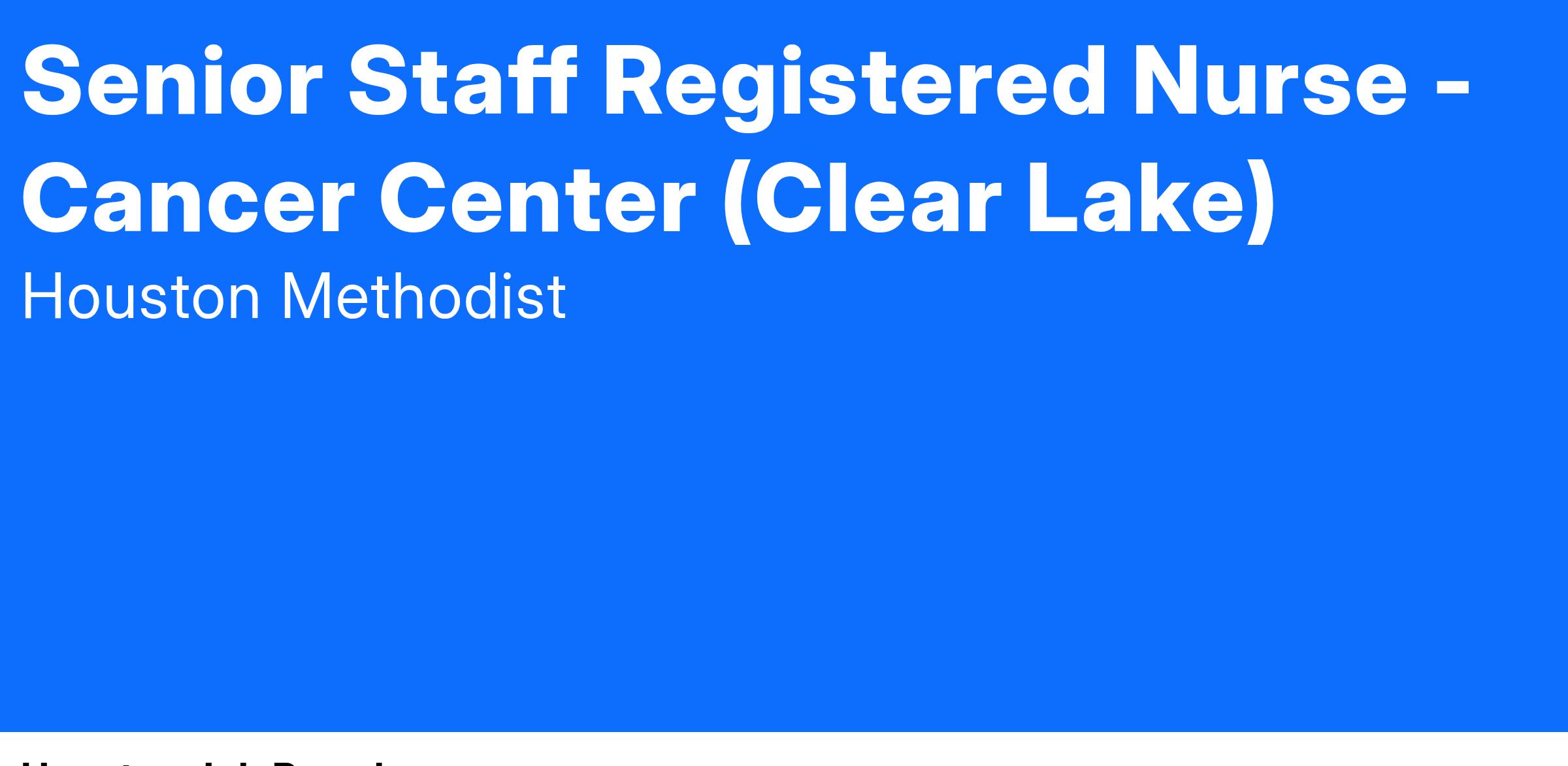 Senior Staff Registered Nurse - Cancer Center (Clear Lake)