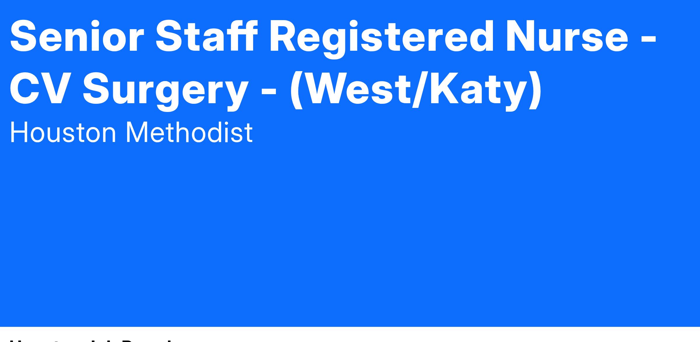 Senior Staff Registered Nurse - CV Surgery - (West/Katy)