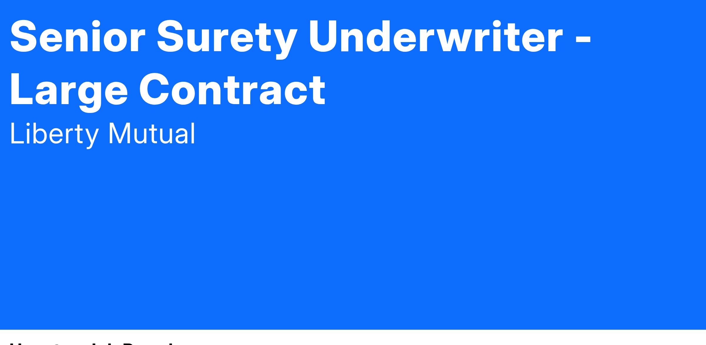 Liberty Mutual Surety™ is currently recruiting for a Senior Surety Underwriter to join our Texas Large Contract team.