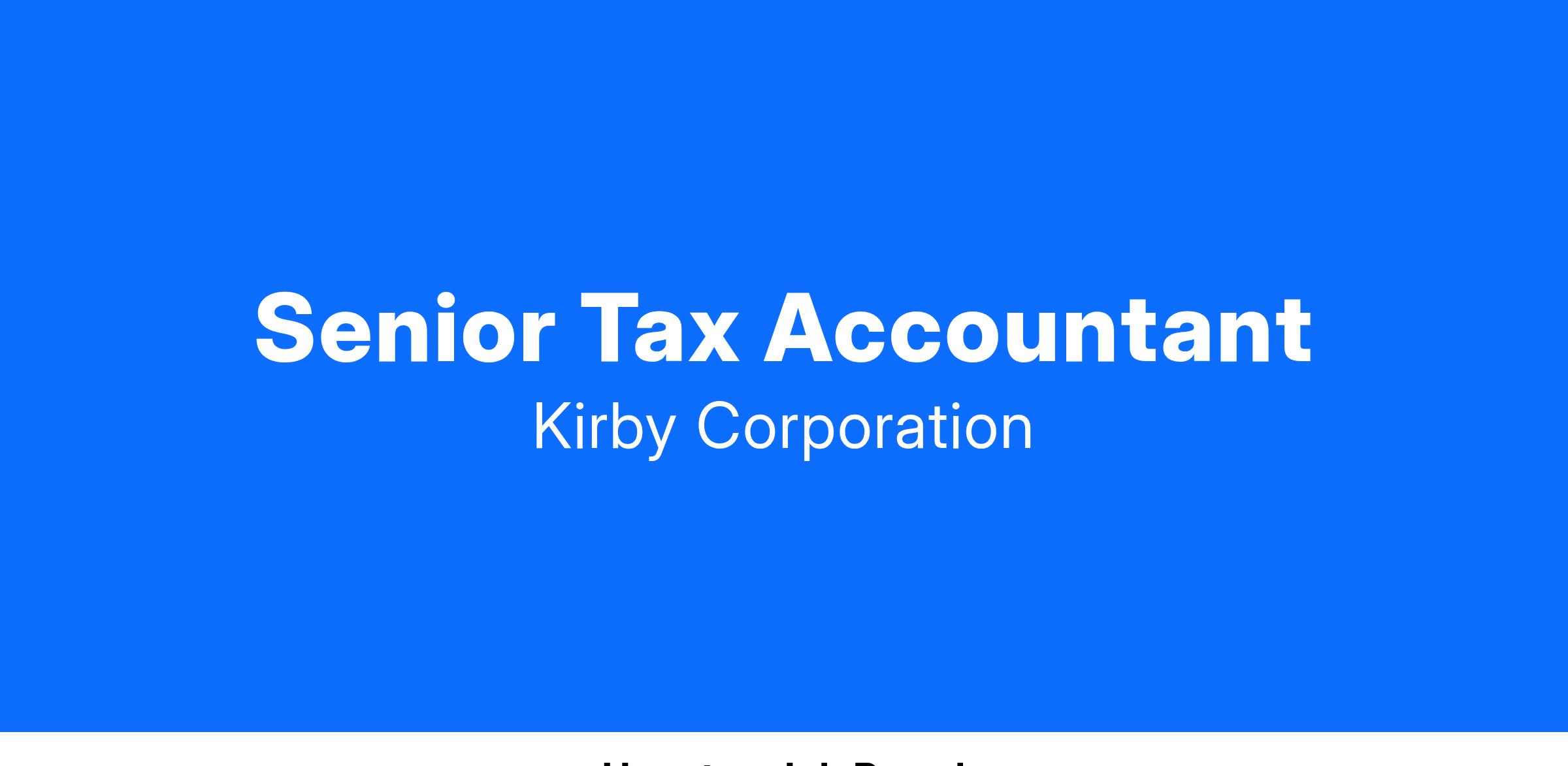 Kirby Corporation is hiring a Senior Tax Accountant at 55 Waugh Dr. in Houston, TX. The Senior Tax Accountant assists the Tax Director with the responsibility for all the Corporation’s U.S. federal, state and local tax returns being properly prepared and filed and calculating the quarterly tax provision. The Senior Tax Accountant also assists in the providing research of tax related issues and special projects. Additionally, the Senior Tax Accountant is responsible for maintaining the centralized tax basis fixed asset system and tax depreciation.