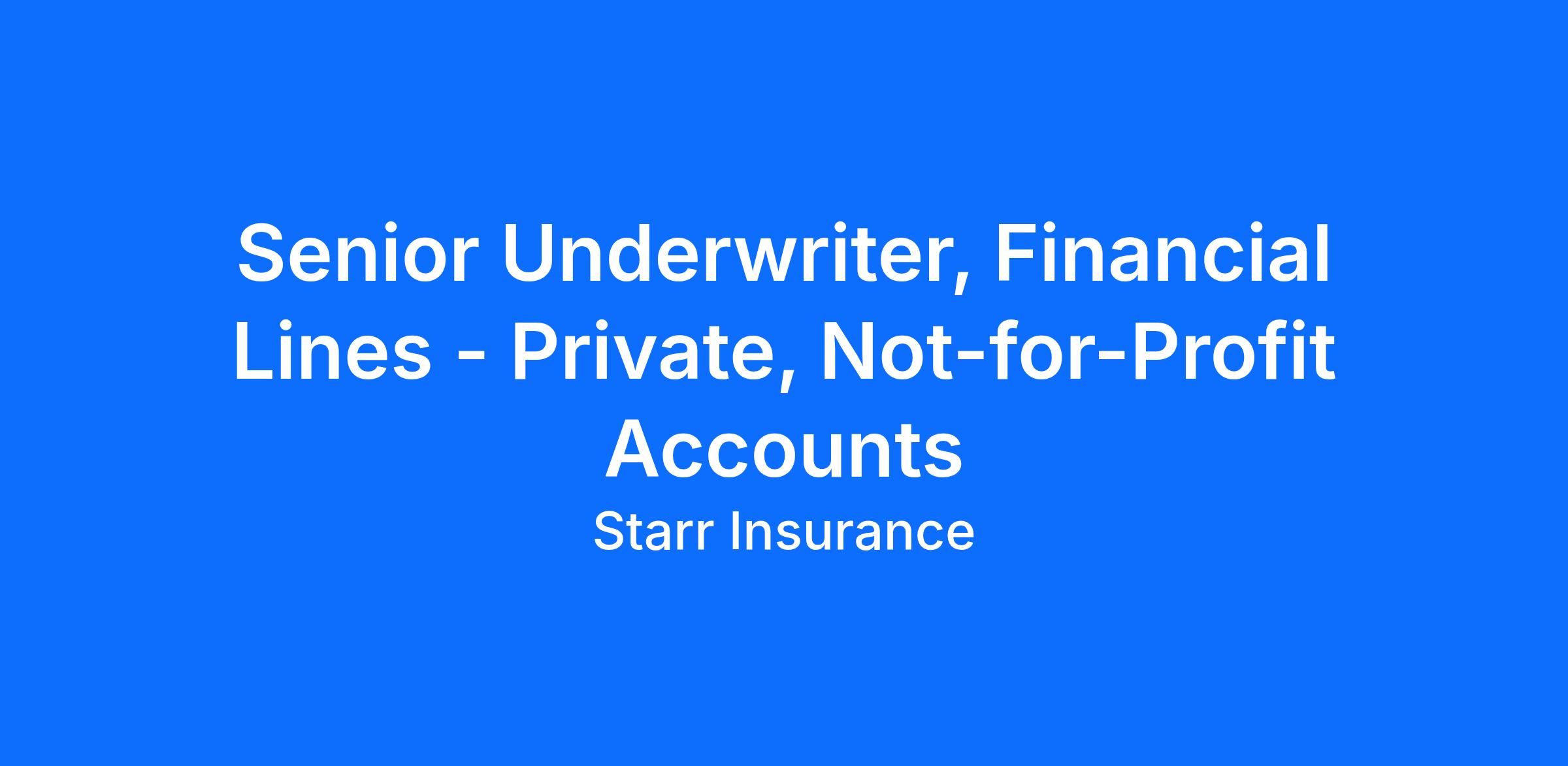 Starr Insurance Companies is seeking a Senior Underwriter in its Financial Lines Division, focusing on Private and Not-for-Profit Accounts.