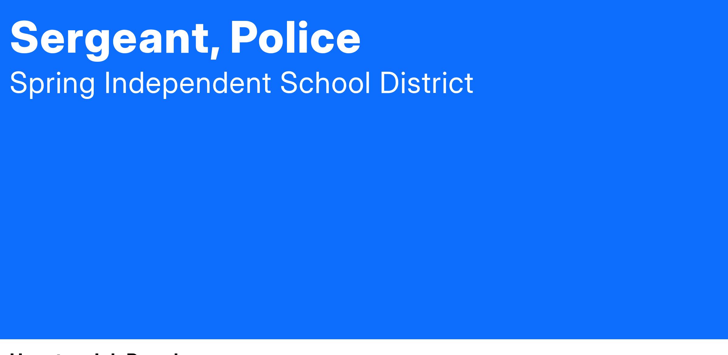 The position serves the School District and the Police Department. This position serves as the Sergeant responsible for supervising the daily work for the corporal(s), officers, investigator(s) and civilian staff assigned to unit. This position will ensure the positions assigned under its leadership maintains a state of readiness in order to meet the day to day operational responsibilities of each position assigned to the unit. The Sergeant of the unit is responsible for managing law enforcement related matters within the boundary of the School District utilizing the Texas Penal Code, Code of Criminal Procedures, District’s Board Policy, Management Guidelines, Departmental Rules and Regulations and other directive from the Chief of Police.