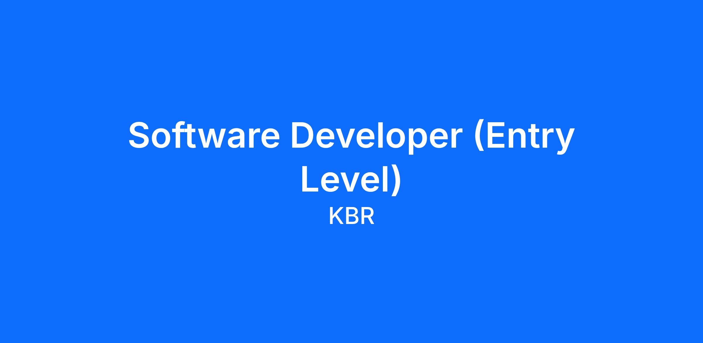 Software Developer (Entry Level)Belong. Connect. Grow. with KBR!