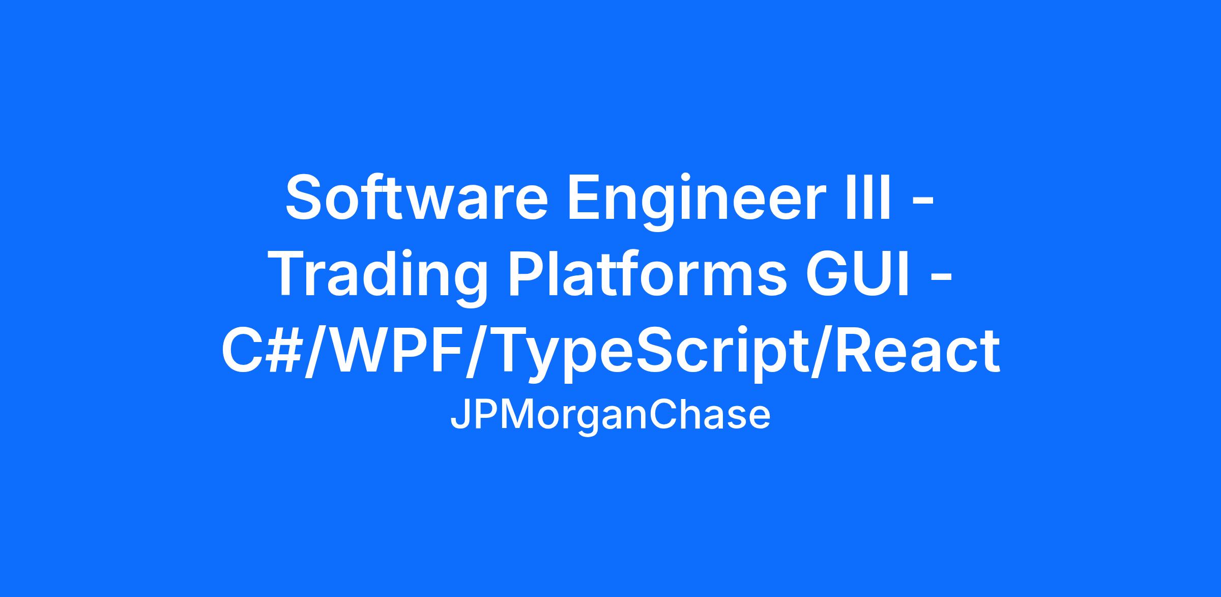 - Proficient hands-on coding in C#/WPF or TypeScript/JavaScript/React