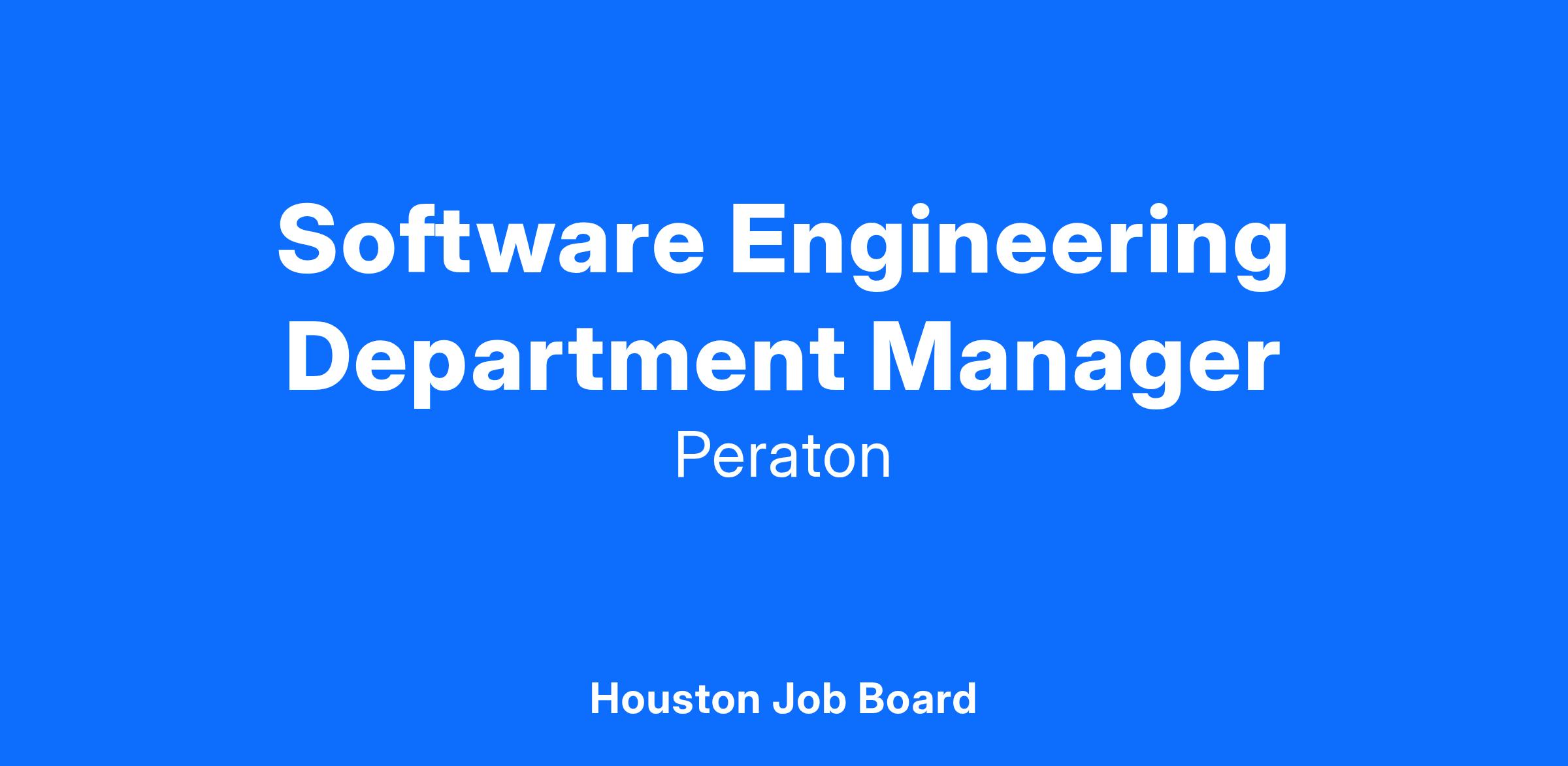 Why Peraton? Join Peraton and become part of an organization that's pushing the boundaries of space exploration. As a Software Engineering Department Manager, you'll play a key role in advancing human spaceflight and contributing to NASA's mission. If you're passionate about space and eager to lead a talented team of engineers, we want to hear from you.