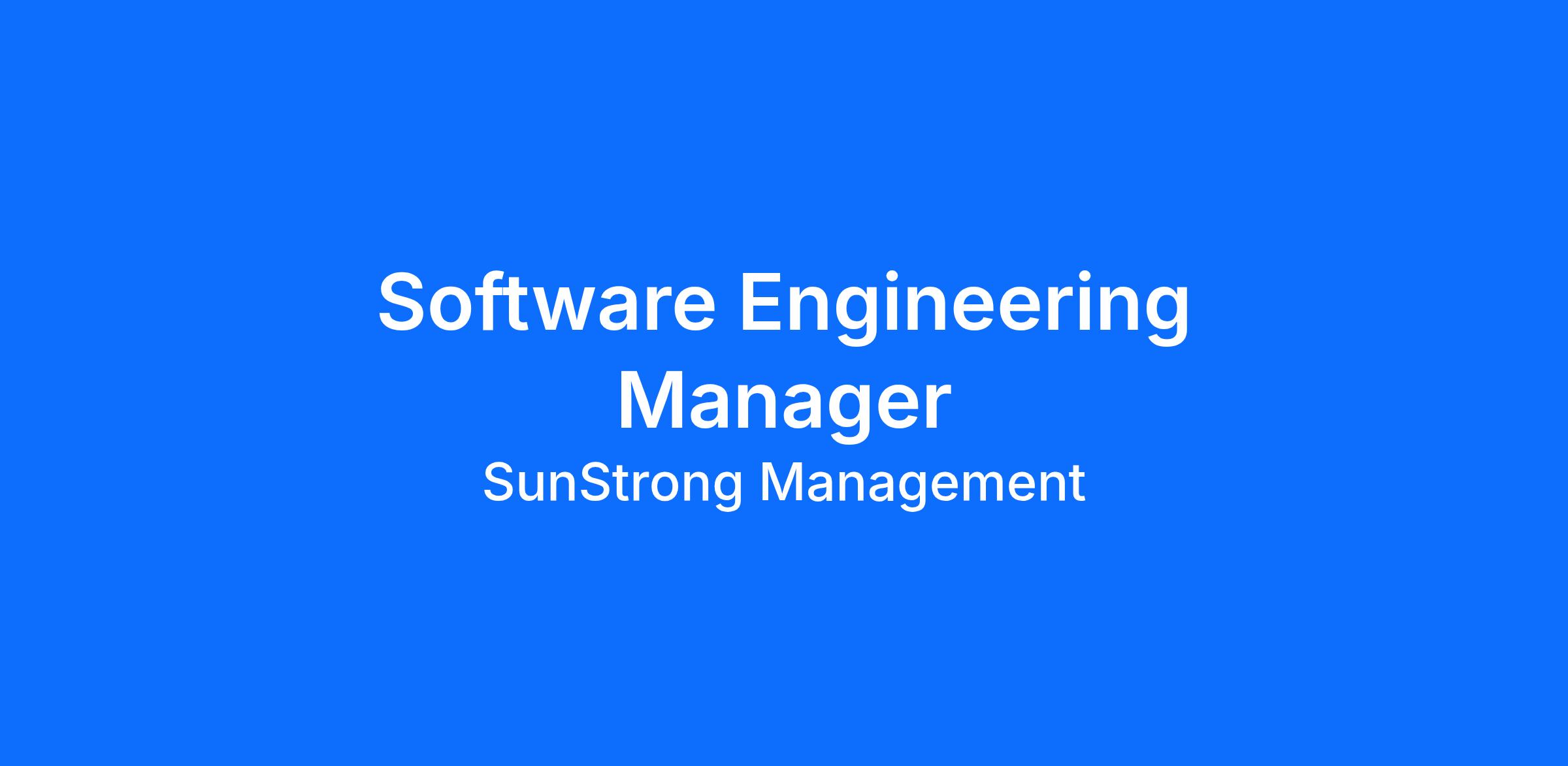 THE SOFTWARE ENGINEERING MANAGER POSITION Sunstrong is searching for a hands-on Software Engineering Manager who will lead a group of software engineers to develop SunStrongβs consumer app experiences including both mobile and web applications. You will be responsible for setting the technical direction for the platforms supporting these consumer experiences, ensuring successful delivery of high-quality products, and fostering a collaborating and innovative work environment.