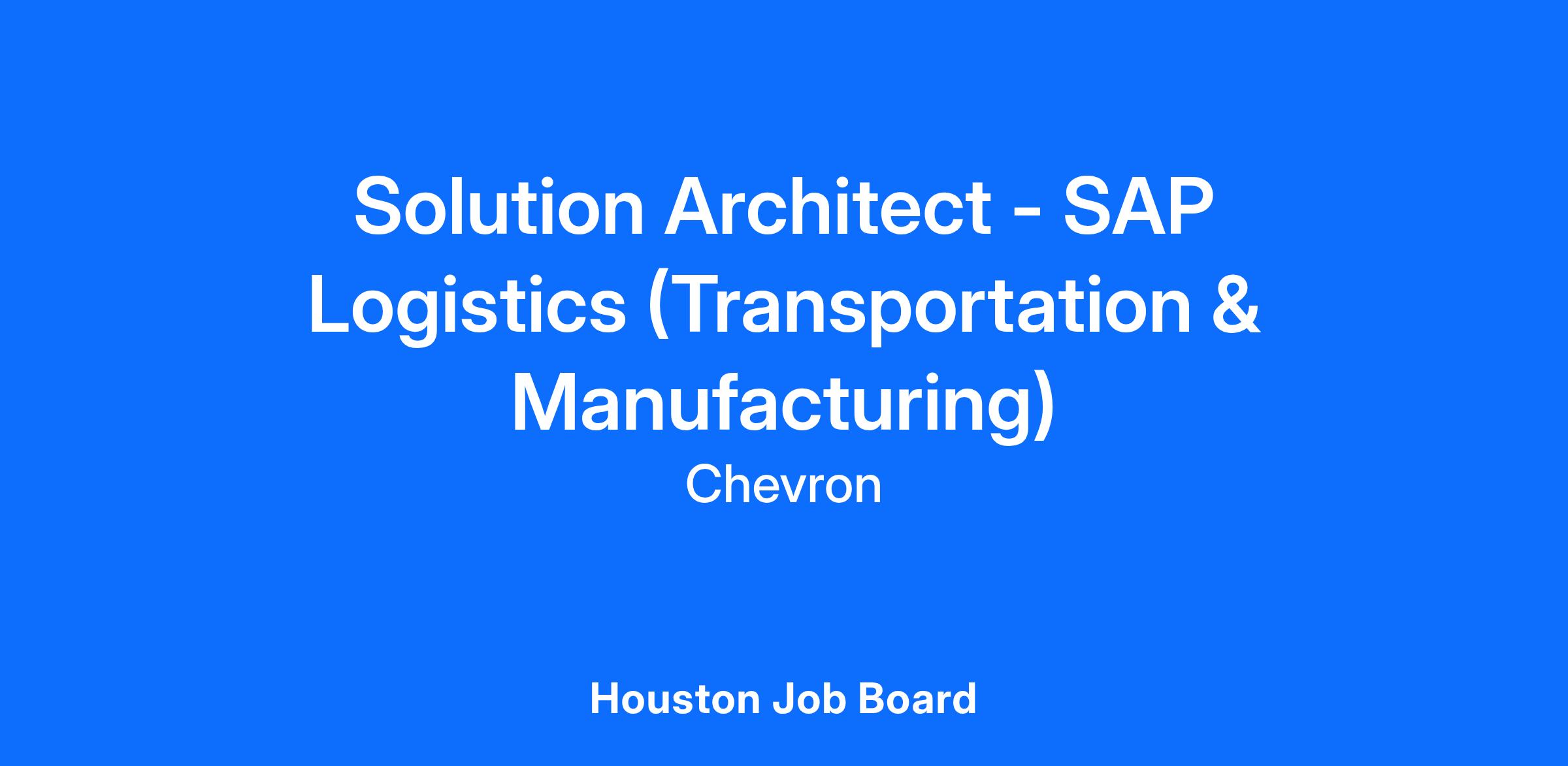 1Chevron is accepting online applications for the position Solution Architect - SAP Logistics (Transportation & Manufacturing) through November 14th, 2025 at 11:59 p.m. (Central Time).
