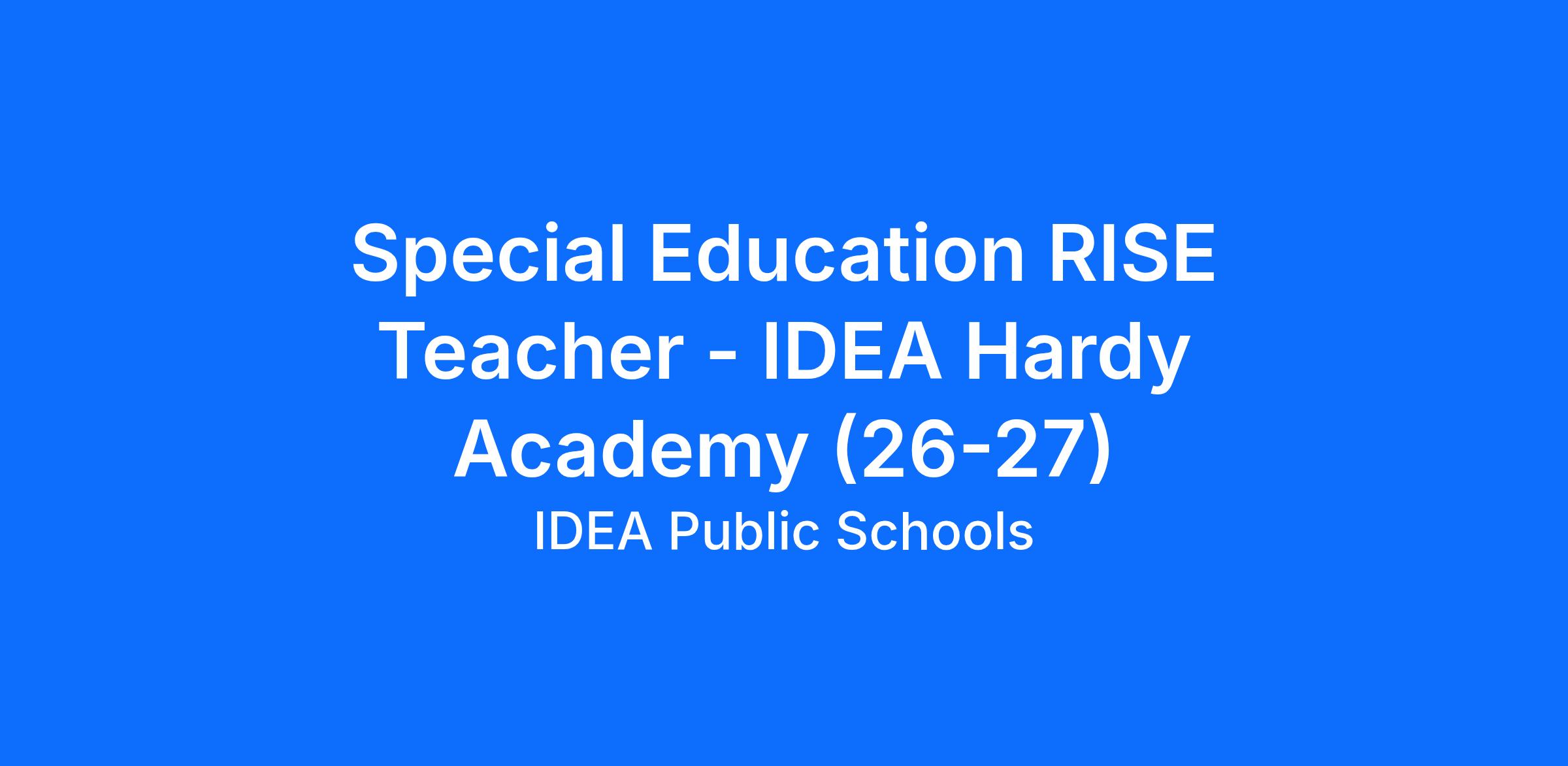 Role Mission: RISE stands for Reaching Independence through Support and Education. IDEA Special Education RISE teachers ensure that our students who have a wide range of learning, cognitive, emotional, and physical disabilities, are held to very high achievement expectations so that they reach their fullest potential. Our IDEA Special Education RISE teachers teach all subjects such as Reading, Writing, and Math, History, Adaptive PE and others to students who have but are not limited to intellectual, behavioral, and physical disabilities. RISE Special Education teachers also provide resources, education, training, and emotional support to the families they serve so families are prepared for long-term plans for their children.