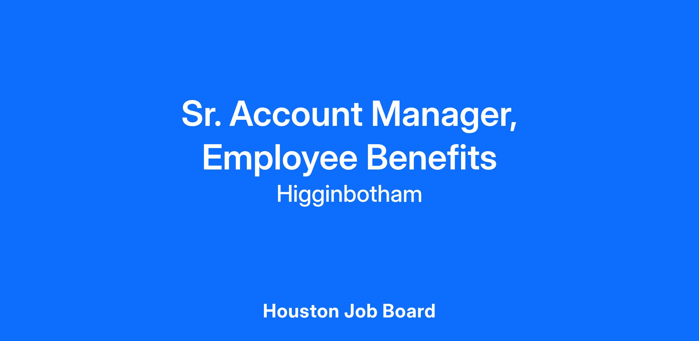 Higginbotham, a privately held, independent insurance and financial services firm that ranks within the top 20 nationwide, has an immediate need for a Sr. Account Manager, Employee BenefitsΒ in our Houston, TXΒ office.