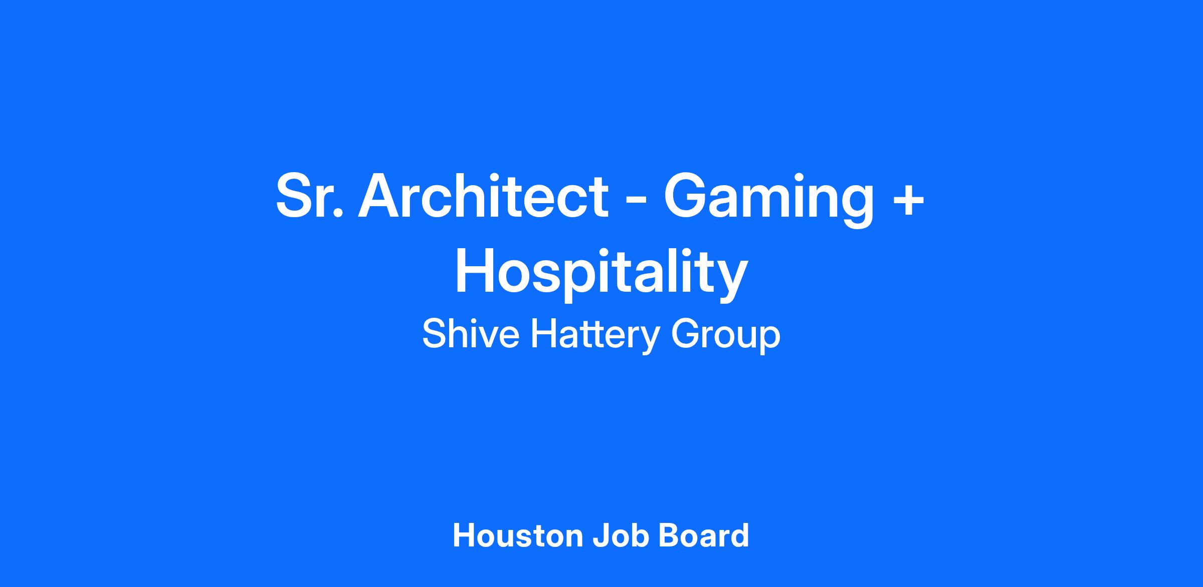 Montgomery Roth a division of Shive-Hattery in our Houston, TX office, has an immediate full-time opening for a Sr. Licensed Architect with a minimum of 7 years of experience.