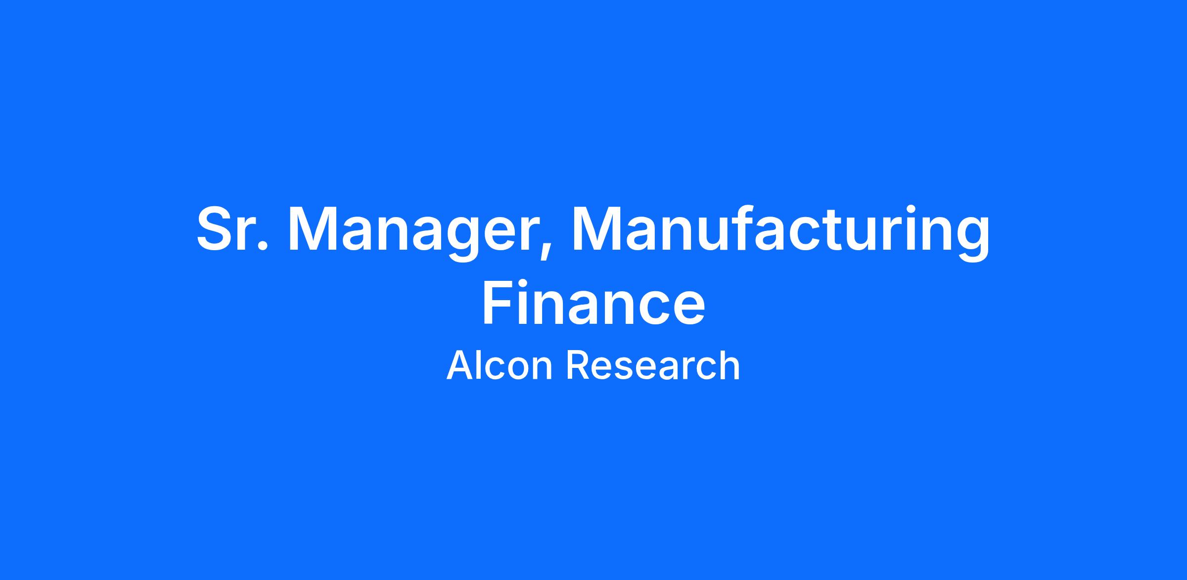 We foster an inclusive culture and are looking for diverse, talented people to join Alcon. As a Senior Manager, Manufacturing Finance, you will support the Manufacturing and Technical Operations (MTO) Finance Director, in all aspects of the site financial performance. You will analyze internal financial information (e.g., profit loss accounts, financial statements, working capital, costs, prices, expenses, revenues, rates of return, etc.) as well as external economic conditions and their impact on business operations (e.g., inflation, interest rates, exchange rates, etc.) You will use financial modeling to measure and forecast potential impacts of financial transactions and corporate development activities
