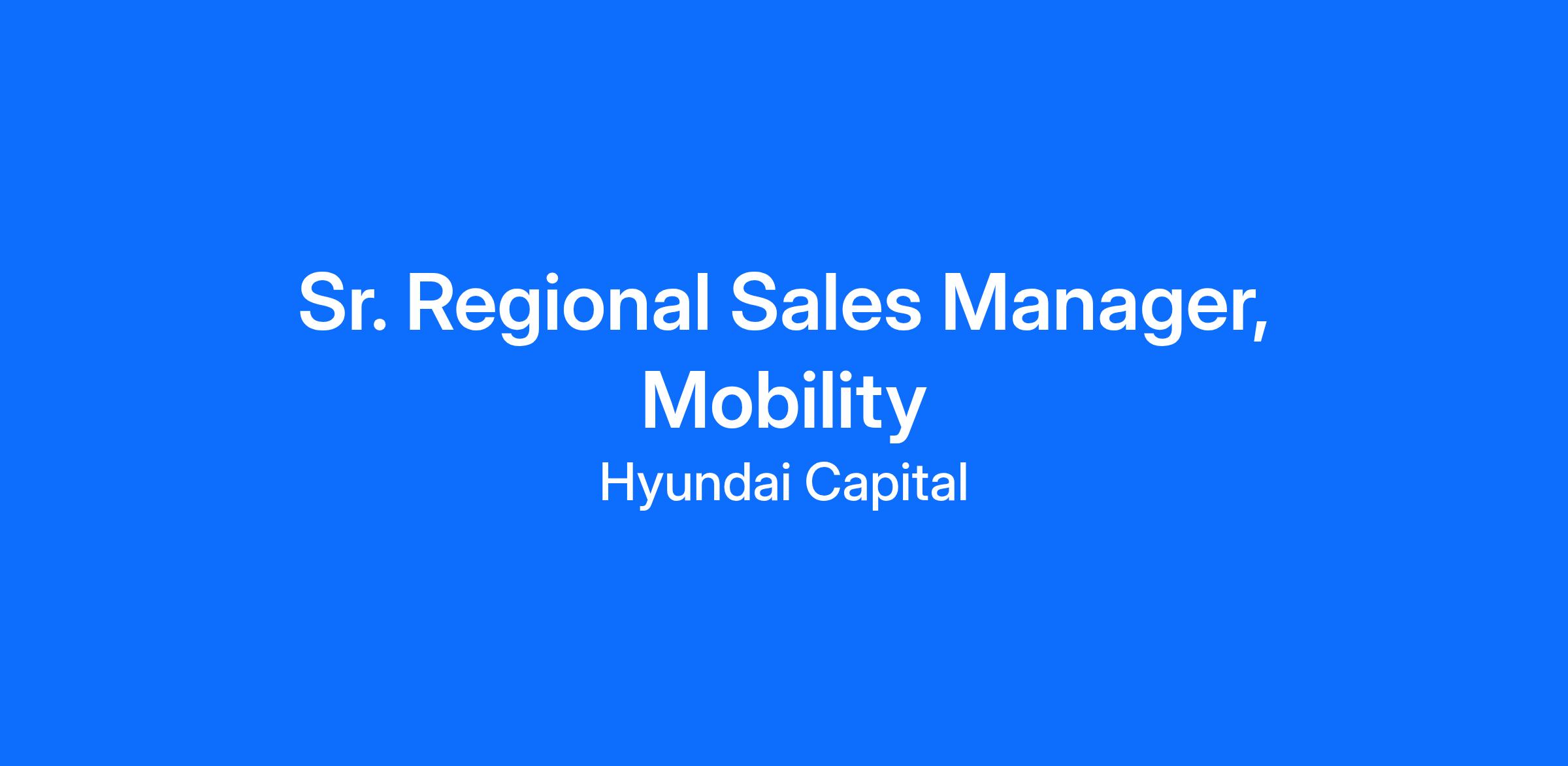 The Sr. Regional Sales Manager, Mobility will serve as the primary regional liaison for the OEM and is responsible for driving commercial growth within both the trailer and rapidly emerging zero-emission trucking sector. This role focuses on expanding Hyundai’s Class 8 hydrogen truck and trailer financing footprint by developing strategic partnerships, identifying new fleet and dealer opportunities, and advancing adoption of HTC’s commercial finance solutions across the dealer and fleet ecosystem. This role will establish and grow relationships with both dealers and the OEMs to grow and support sales goals including monitoring regional OEM and dealer performance to achieve region profitability objectives. In addition, this role is accountable for the acquisition of new commercial customers, dealer conversions, and fleet portfolio expansion by developing and executing the Region’s zero-emission vehicle and trailer growth strategy and supporting the adoption of new hydrogen ecosystem products and services launched by the company, including infrastructure financing, telematics-driven utilization models, fleet subscription packages, and emerging Class 8 technologies.