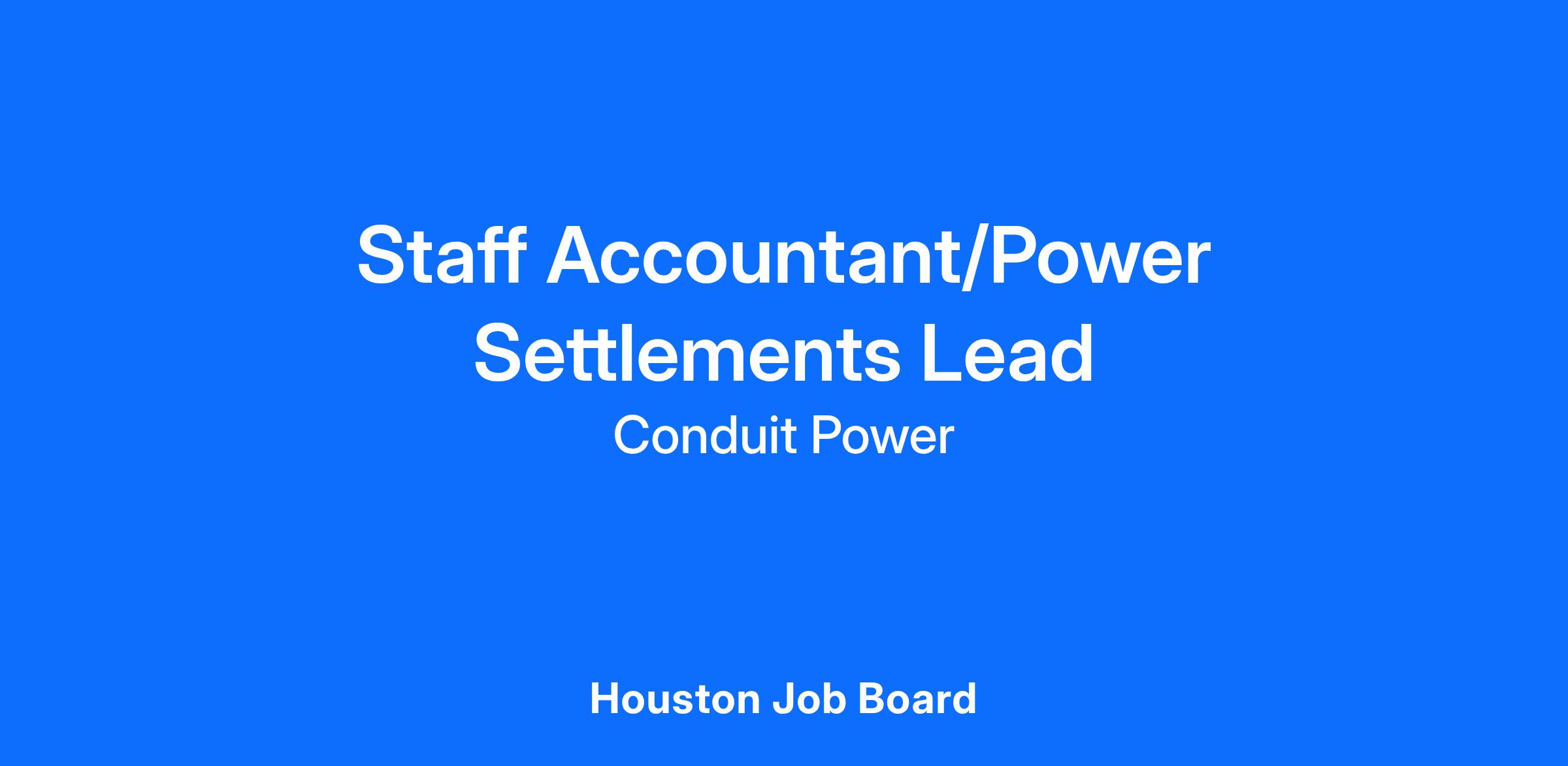 We are seeking an experienced Staff Accountant/Power Settlements Lead to join our dynamic team at Conduit Power. In this role, you will play an important part in maintaining financial integrity and providing strategic support within the finance department. Working closely with the Controller’s team, Market Operations team and other members of management, you will support various aspects of accounting, power settlements’ analysis, and their related financial reporting needs. This hybrid role requires a detail-oriented individual with strong analytical skills, a solid understanding of accounting principles, familiarity with power trading settlements, and the ability to effectively communicate financial information.